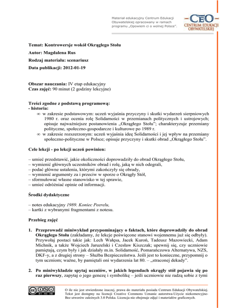 Kontrowersje wokół Okrągłego Stołu[scenariusz]