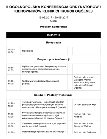 pobierz program - ii ogólnopolska konferencja ordynatorów i