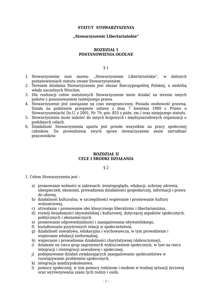 STATUT STOWARZYSZENIA „Stowarzyszenie Libertariańskie