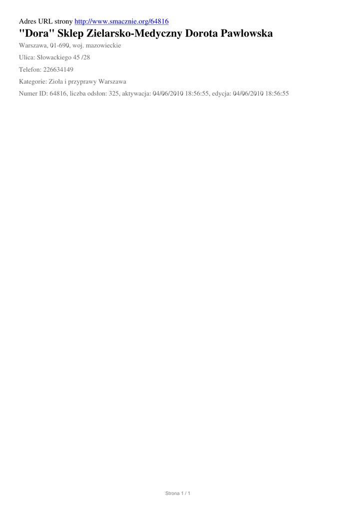 "Dora" Sklep Zielarsko-Medyczny Dorota Pawlowska
