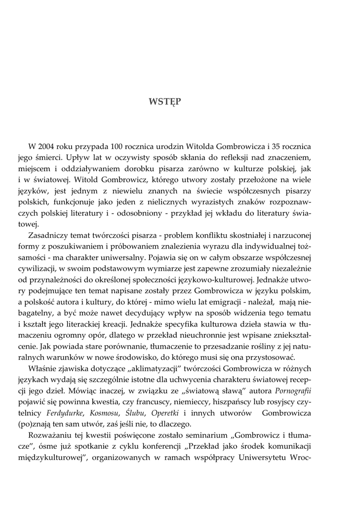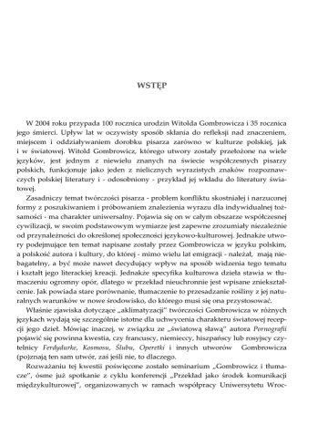 autorów innych prac zebranych w tym tomie, a zajmujących się przekładami Pornografii, Trans-Atlantyku, Bakakaju (zob. prace Brigitte Gautier, Elżbiety Skibińskiej,