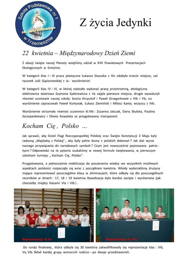 Z życia Jedynki - Szkola Podstawowa nr 1 w Trzemesznie