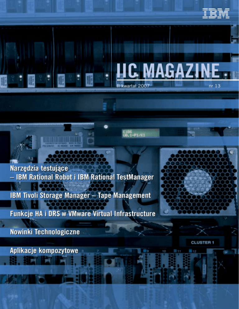 IIC MAGAZINE II kwartał 2007 Narzędzia testujące – IBM Rational Robot i IBM Rational TestManager IBM Tivoli Storage Manager – Tape Management Funkcje HA i DRS w VMware Virtual Infrastructure Nowinki Technologiczne Aplikacje kompozytowe nr 13 OD REDAKCJI Drodzy Deweloperzy, w bieżącym numerze sporo miejsca poświęcimy narzędziom wspomagającym pracę programistów, nie zapominając jednocześnie o tematach, które mogą zainteresować bardziej administratorów systemów informatycznych. Rozpoczynamy od artykułu „Narzędzia testujące – IBM Rational Robot i IBM Rational TestManager”, w którym Marcin Panasiuk i Arkadiusz Łączyński przedstawiają tandem zintegrowanych narzędzi IBM, służących do wszechstronnego testowania funkcjonalnego i wydajnościowego aplikacji. Następnie na przykładzie wycinka funkcjonalności oprogramowania IBM Tivoli Storage Manager, pracującego pod kontrolą systemu Redhat Linux, Paweł Krawczyk pokaże, w jaki sposób efektywnie zarządzać taśmami w bibliotece taśmowej. O tym szerzej w artykule „IBM Tivoli Storage Manager – Tape Management”. O dwóch nowych funkcjonalnościach, które pojawiły się w trzeciej wersji produktu VMware, przeczytacie natomiast w materiale przygotowanym przez Igora Zacharjasza. Pierwsza z nich (HA) to metoda zapewniająca wysoką dostępność do maszyn wirtualnych, a druga (DRS) służy do optymalizacji wykorzystania zasobów oraz do zautomatyzowania procesów migracji maszyn wirtualnych pomiędzy serwerami fizycznymi. Polecam również pierwszy z cyklu artykuł Rafała Skirzyńskiego, pt. „Aplikacje kompozytowe”, w którym autor prezentuje nowe podejście do tworzenia aplikacji wykorzystujących techniki Web 2.0 oraz SOA. SPIS TREŚCI 3 Narzędzia testujące – IBM Rational Robot i IBM Rational TestManager 8 IBM Tivoli Storage Manager – Tape Management 13 Funkcje HA i DRS w VMware Virtual Infrastructure 16 Nowinki Technologiczne 17 Aplikacje kompozytowe Na zakończenie warto też zajrzeć do działu z „Nowinkami Technologicznymi”, w którym tym razem dowiecie się m.in. o wsparciu języka PHP i bazy MySQL na platformie serwerowej IBM System i oraz długo wyczekiwanym najnowszym procesorze Power6, który nokautuje pod względem wydajności swojego poprzednika – Power5. Po przeczytaniu magazynu pamiętajcie też, aby odpowiedzieć na proste pytanie konkursowe, a następnie wypełnijcie ankietę i odeślijcie na wskazany numer faksu. Dla wszystkich, którzy udzielą prawidłowych odpowiedzi, mamy sympatycze upominki z logo IBM Innovation Center. Jak co kwartał, czekam też na Wasze artykuły i informacje do rubryki „Nowinki Technologiczne”. Najciekawsze z nich mają szansę ukazania się już w kolejnym numerze IIC Magazine. Jeżeli chcielibyście podzielić się z nami swoimi uwagami lub komentarzami na temat aktualnego wydania magazynu, piszcie do nas. Okładka: Fot. Igor Zacharjasz Aneta Dąbrowska Redaktor prowadząca [email protected] Marcin Panasiuk i Arkadiusz Łączyński NARZĘDZIA TESTUJĄCE – IBM RATIONAL ROBOT i IBM RATIONAL TESTMANAGER Wstęp Rational TestManager jest narzędziem służącym do przygotowywania planów testów z wykorzystaniem skryptów z programów IBM Rational Robot oraz IBM Rational Functional Tester. Plany są tak szeroko rozbudowane, że mogą symulować pracę wielu użytkowników w zależności od czasu pracy, obciążenia, rodzaju testów i innych. Po wykonanych testach generowane są szczegółowe raporty, pozwalające stwierdzić, jak nasza aplikacja reaguje na określone parametry bądź obciążenie. Artykuł ten poświęcony jest dwóm narzędziom służącym do testowania aplikacji – IBM Rational Robot oraz IBM Rational TestManager. Pierwsze z nich pozwala na rejestrowanie i edytowanie skryptów testujących aplikację, drugie natomiast służy do przygotowywania planów testów z wykorzystaniem wcześniej utworzonych skryptów. Obydwa narzędzia są ze sobą ściśle powiązane i razem tworzą ciekawe rozwiązanie dla zespołów testujących aplikacje. Poniżej omówiona zostanie instalacja oraz przygotowanie narzędzi do pracy. Natomiast w drugiej części zostanie pokazane ich zastosowanie do testowania aplikacji korzystających z protokołu HTTP. IBM Rational Robot wspomaga proces automatycznego testowania oprogramowania dzięki możliwościom nagrywania zachowań użytkownika podczas pracy z aplikacją. Dzięki rozbudowanym funkcjom możliwe jest monitorowanie odtwarzanej sekwencji w celu sprawdzenia, czy aplikacja w dalszym ciągu zachowuje się poprawnie. Praca z Rational Robot opiera się na tworzeniu i odtwarzaniu nagranych skryptów. Istnieją dwie metody tworzenia skryptów: GUI oraz VU. Instalacja i konfiguracja Instalację rozpoczynamy od pakietu IBM Rational TestManager. Wraz z TestManagerem zostaną zainstalowane także inne programy konieczne do przygotowania środowiska testowego. • Rational Administrator – służący do zarządzania bazą danych dla projektów w TestManagerze i Robocie • Rational License Key Administrator – program, dzięki któremu będziemy mogli pobrać licencję z serwera licencji • Rational Test Agent – służący do wykonywania skryptów zleconych przez TestManagera W trybie GUI nagrywane są interakcje użytkownika z aplikacjami działającymi w środowisku Windows. Metoda ta charakteryzuje się rejestrowaniem wszelkich akcji użytkownika pracującego z aplikacją. Ważne jest zatem, aby przed rozpoczęciem nagrywania zestawić środowisko testowe w celu uniknięcia zbędnych kliknięć na interfejsie. Testy tego typu służą do testów funkcjonalnych, jak i wydajnościowych. Skrypty zapisywane są z wykorzystaniem języka SQABasic. Następnie instalujemy Rational Robot oraz IBM Rational License Server, jeśli nie mamy dostępnego w sieci serwera licencji. W trybie VU przechwytywane są zapytania przeglądarki do serwera HTTP oraz odpowiedzi serwera. Na podstawie tych informacji gener