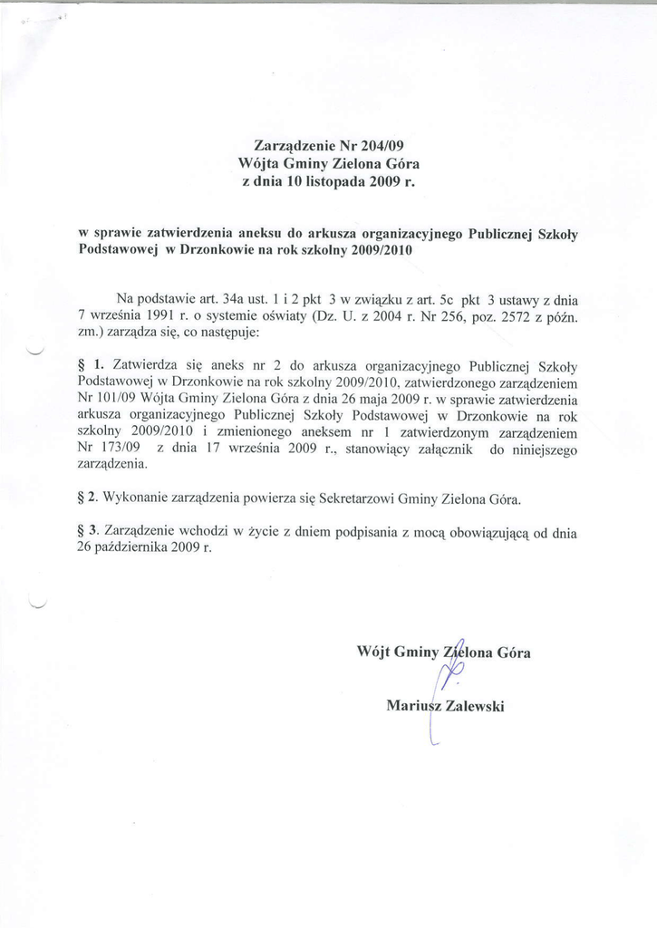 szkolny 2009/2010i zmienionegoaneksemnr I zatwierdzonymzarzqdzeniem
