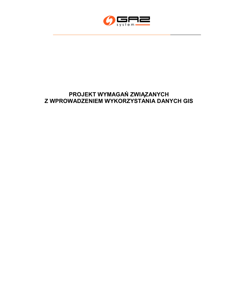 PROJEKT WYMAGAŃ ZWIĄZANYCH Z WPROWADZENIEM WYKORZYSTANIA DANYCH GIS 1.1 Skróty i definicje Inwestor - Operator Gazociągów Przesyłowych Gaz-System S.A. MPZP – miejscowy plan zagospodarowania przestrzennego Odcinki newralgiczne – trudne w realizacji ze względu na występowanie szeregu niekorzystnych uwarunkowań; mogących powodować zagrożenia na etapie realizacji. Odcinki te, na etapie realizacji inwestycji, powinny podlegać zwiększonej kontroli np. poprzez naloty bezzałogowym statkiem latającym. OPZ – Opis Przedmiotu Zamówienia Projekt – pilotażowy projekt bazy danych GIS oraz danych fotogrametrycznych pozyskanych z oblotów bezzałogowego statku latającego wraz z aplikacją do prezentacji i analizy danych. Projektant – oznacza podmiot opracowujący Dokumentację Projektową na podstawie zawartej z Inwestorem umowy. Specyfikacja – specyfikacja bazy danych GIS opis struktury bazy. SUiKZP – Studium Uwarunkowań i Kierunków Zagospodarowania Przestrzennego. Strona 2 z 8 1.2 Dodatkowe wymagania ogólne związane z zagadnieniami GIS 1. Projektant jest odpowiedzialny za jakość, zgodność z wymaganiami opisanymi dla przedmiotu zamówienia. 2. Wymagana jest należyta staranność przy realizacji zobowiązań umowy. 3. Liczba i doświadczenie personelu projektowego powinna zapewniać prawidłową realizację umowy w zakresie opracowywania i przekazywania danych GIS. 4. Wymaga się od Projektanta bieżącej koordynacji prac międzybranżowych oraz ścisły nadzór nad pracami podwykonawców – jako element zapewnienia jakości danych GIS. 5. Odbiór poszczególnych etapów i przekazanie danych GIS z nimi powiązanych nastąpi stosownym protokołem po ich uzgodnieniu i zatwierdzeniu przez Inwestora. Zatwierdzony przez Inwestora protokół będzie podstawą do wystawienia faktury i dokonania jej zapłaty za dany etap. 6. Projektant będzie przekazywał sukcesywnie Inwestorowi zebrane i opracowane dane. Pozwoli to Inwestorowi nadzorować pracę projektanta oraz na zapoznanie się z zebranym materiałem, a także przyśpieszy późniejsze prace związane z uzgadnianiem dokumentów przy odbiorze. 7. Projektant będzie wykonywał swoje obowiązki w ścisłej współpracy z Inwestorem, zgodnie z jego kontraktowymi poleceniami i obowiązującymi przepisami oraz regulacjami stosowanymi dla projektów współfinansowanych przez Unię Europejską. 8. Projektant zobowiązany jest do zbierania, opracowywania i przekazywania Zamawiającemu danych GIS z zakresu projektowanego gazociągu zgodnych ze Specyfikacją. 9. Projektant na etapie projektowania inwestycji szczegółowo opisze kryteria, wg których określi odcinki newralgiczne i na ich podstawie wyznaczy te odcinki. Strona 3 z 8 1.3 Dodatkowe wymagania w zakresie danych GIS 1. Projektant przekaże Inwestorowi na każdym etapie projektowania przewidzianym w Specyfikacji zestaw danych GIS, w formie geobazy plikowej ESRI (.gdb), zgodny ze Specyfikacją co do zakresu i rozwarstwienia. 2. Materiały zebrane przez Projektanta powinny być przekazane w wersji elektronicznej na nośniku CD/DVD/przenośny dysk twardy oraz przez załadowanie plików na wewnętrzny serwer wymiany informacji Inwestora. 3. Przekazywanie danych przez Projektanta odbywać się będzie w etapach określonych w Specyfikacji: I. Etap – Koncepcja przebiegu trasy II. Etap – Ocena oddziaływania inwestycji na środowisko III. Etap – Rozwiązania techniczne IV. Etap – Projekt Budowlany i Wykonawczy 4. Dane przekazywane Inwestorowi przez Projektanta obejmują następujące zakresy:: I. W ramach I etapu: 1) Granice administracyjne: województwa, powiaty, gminy, obręby ewidencyjne; 2) Mapy topograficzne: w skali 1:10 000, 1:50 000, 1:100 000; 3) Ortofotomapy z zasobu CODGiK lub dedykowana ortofotomapa wykonana na potrzeby projektowania gazociągu; 4) Dane środowiskowe: obszary Natura 2000 OSO, Natura 2000 SOO, parki narodowe, parki krajobrazowe, rezerwaty, obszary chronionego krajobrazu, użytki ekologiczne, korytarze ekologiczne, siedliska zwierząt, siedliska przyrodnicze; 5) Dane o ukształtowaniu terenu z zasobu CODGiK lub innego spełniającego zapisy Specyfikacji; 6) Dane o obszarach górniczych: obszary górnicze, tereny górnicze, złoża kopalin; Strona 4 z 8 7) Dane geologiczne i hydrologiczne: Mapa Hydrogeologiczna Polski, Szczegółowa Mapa Geologiczna Polski w skali 1:50 000; 8) Dane archeologiczne: zabytki archeologiczne nieruchome, ewidencyjne i rejestrowe; 9) Dane leśne: granice oddziałów leśnych, granice nadleśnictw; 10) Planistyka: pliki rastrowe z odpowiednią georeferencją (bądź wektorowe, jeżeli są dostępne) zawierające rysunki MPZP i SUiKZP. II. W ramach II etapu: 1) Szczegółowe dane środowiskowe niezbędne do uzyskania decyzji środowiskowej – wyniki przeprowadzonych inwentaryzacji przyrodniczych. 2) Zakres decyzji środowiskowej III. W ramach III etapu: 1) Dane projektowe: oś trasy gazociągu, kilometraż, strefa kontrolowana, pas montażowy; 2) Odcinki wykonywane metodą bezwykopową – warstwa liniowa zawierająca odcinki osi trasy gazociągu przewidywane do wykonania metodą bezwykopową; 3) Proponowane odcinki newralgiczne; 4) Mapy tematyczne i specjalistyczne: w zależności od dostępności dla danego obszaru – mapy zasadnicze, ewidencyjne, gleboworolnicze, gospodarcze lasów; 5) Wyniki badań geologicznych przeprowadzanych na potrzeby projektu. IV. W ramach IV etapu: 1) Dane ewidencyjne (warstwa działek ewidencyjnych); 2) Słupki oznacznikowe i słupki pomiarowe gazociągu; 3) Branżowa Mapa Numeryczna / Mapa do celów projektowych; 4) Skrzyżowania projektowanego gazociągu z istniejącą infrastrukturą: drogową, kolejową, techniczną oraz z ciekami; 5) Zatwierdzone odcinki newralgiczne; 6) Numeryczny Model Terenu. Strona 5 z 8 5. Projektant zobowiązany jest do przygotowywania danych wymienionych w punkcie 4, w etapach I – IV, zgodnie ze Specyfikacją. 6. Projektant przeprowadzi niezbędne anali