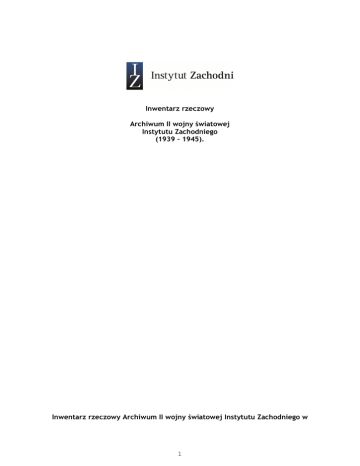 1 Inwentarz rzeczowy Archiwum II wojny światowej Instytutu