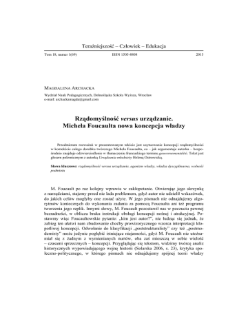 Rządomyślność versus urządzanie. Michela Foucaulta nowa