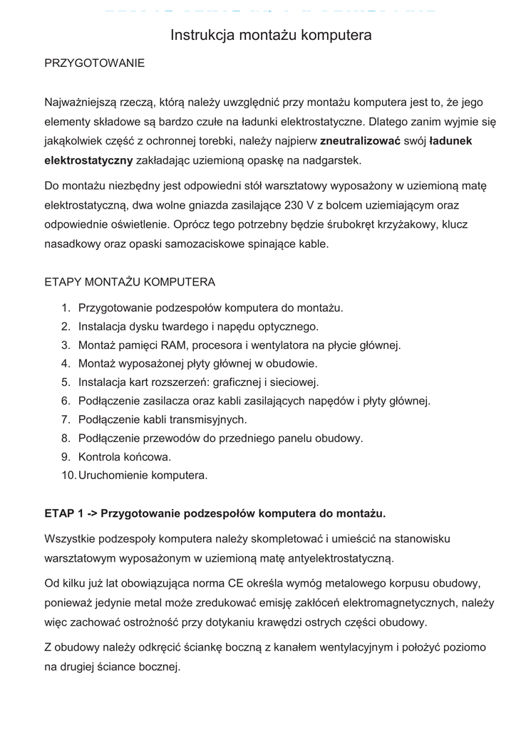 Instrukcja montażu komputera
