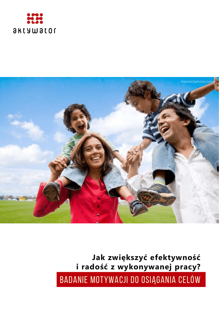 Jak zwiększyć efektywność i radość z wykonywanej pracy? Badanie Motywacji do osiągania celów Osoba prowadząca badanie zawodowo Konrad Dębkowski aktywator konsultantbiznesowy,własnadziałalnośćgospodarcza Pomagam menedżerom i właścicielom firm MSP we wzroście skuteczności osób i zespołów. Doradzam jak stworzyć bardziej zmotywowane,zaangażowaneiskuteczniejszezespoły.Prowadzę warsztatystrategiczne,szkolenia(komunikacja,współpraca,motywacja)orazbadania(motywacji,kompetencji,satysfakcji) Getin Noble Bank trenerwewnętrzny PrzyczyniłemsiędowzrostusprzedażywGetinLeasingza2011 +120%rdr.Prowadziłemwarsztatybiznesowedlakadryzarządzającej,szkoliłempartnerówB2B(szkolenia produktowe,procesowe,sprzedaż,motywacja) kierownikzespołuwdrożeniowego 2015 Literatura 2012 Cykl szkoleń menedżerskich 2010 PUW Elektronika sp. z o.o. Anika Usprawniłem procesy biznesowe w firmie, wdrożyłem zintegrowanysystemklasyERPwfirmiefarmaceutycznej“MedanaPharmaS.A”wSieradzu(logistyka,zaopatrzenie,harmonogramowanie,produkcja,kontrolajakości,sprzedaż,magazynowanie). ACT - Advanced Computer Technologies S.C. Obrotyizyskifirmywzrastałyo20%rocznie,przeszkoliłemponad ślub 100praktykantów. Biznesowa,zarządzanie,psychologia: społeczna,poznawcza,behawioralna, m o t y w a c j a wewnętrzna szkoła trenerów moderator 2008 2004 kierownikfilii Zbudowałem najmocniejszą markę z firm komputerowych w moim mieście, osiągnąłem największy udział w lokalnym rynku. Jakośćproduktówiwysokajakośćobsługidałanamtysiącezado- Kira wolonychklientów. pasje .error.clan - sporty elektroniczne Stworzyłem najsilniejszy klan w PolsceiwEuropie,wybranomnienanajlepszegoclanliderawPolsce 2002 2001 Wyższa Szkoła informatyki Budowaniewizerunkufirmnapodstawiegrafiksieciowychianimacji Best PC własnadziałalnośćgospodarcza(IT) Gillette, AWARD Komputer Przedstawicielhandlowy entuzjazm rzetelność wspieranie 1997 wartości www . aktywator . eu 01 Fakty 2/3 (68%) polskich pracowników nie angażuje się w pracy 17% polskich pracowników jest zaangażowanych • deficyt motywacji • obniżenie gotowości do realizowania celów • obniżenie własnej produktywności • wymierne straty • większa produktywność (ok. 20%) • generowanie większych zysków (ok. 20%) • rzadsza zmiana pracy •częściej w pracy (ok. 40%) •wyższa jakość pracy (ok. 40%) •lepsze samopoczucie •wyższa satysfakcja klientów dane: Instytut Gallupa Najczęstsze powody braku zaangażowania pracowników lub odejścia z pracy „ n i e j e s t wa ż n e , jak bardzo jesteś z m o t y w o w a n y, lecz dlaczego jesteś zmotywowany Skuteczny menedżer czyli co cię motywuje” 1.N i e s p e ł n i o n e oczekiwania 2.Niedopasowanie cech i umiejętności pracownika do stanowiska 3.Zbyt słaby coaching i informacja zwrotna 4.Poczucie niskiej wartości i niedocenienia • • • • •odpowiada za ok. 70% poziomu zaangażowania pracownika umiejętnie wykorzystuje specyficzny potencjał pracownika poświęca swoim podwładnym szczególną uwagę buduje relacje oparte na otwartości i zaufaniu jest zaangażowany i dociekliwy www . aktywator . eu 02 Czy wiesz, że? Mechanizm motywacji pozafinansowej jest jednym z podstawowych i najistotniejszych czynników wpływających na sukcesy i porażki przedsiębiorstw Motywacja osiągnięć jest bardzo ważna dla stanowisk, w których jednostka sama decyduje, w jaki sposób wykonuje zadania i organizuje swoją pracę Osoby z wysoką motywacją osiągnięć są bardziej efektywne i gotowe do podejmowania zadań poprawiających organizację pracy Menedżerowie, kierownicy z wysoką motywacją osiągnięć skuteczniej zarządzają zespołami Motywacja osiągnięć reprezentuje mistrzowski i wykonawczo-zadaniowy styl zarządzania celami www . aktywator . eu 03 Korzyści dla menedżera Wzrost zaangażowania Dzięki motywacji chce nam się rano wstać z łóżka i z entuzjazmem wykonywać swoją pracę. Motywacja daje nam energię do pracy, sens i radość. Wracając do domu możemy być dumni z dobrze wykonanej pracy. Wyniki badań motywacji osiągnięć dają konkretne wskazówki dotyczące motywacji każdej z osób. Dzięki temu menedżer może skuteczniej motywować swój zespół. Samomotywacja Poznanie osobistych potrzeb realizacji i osiągania sukcesu zawodowego - pozwala menedżerowi lepiej zrozumieć siebie. Dzięki temu wzrasta charyzmatyczność menedżera i wiara w sprawczość. Dopiero wtedy menedżer może próbować zrozumieć innych, dostosowując motywowanie do indywidualnej sytuacji i potrzeb pracownika. Wzrost efektywności i skuteczności Badania Instytutu Gallupa (2 mln firm na całym świecie) wykazały, że satysfakcja i zaangażowanie pracowników wpływają bezpośrednio na efektywność i skuteczność. Dzięki znajomości czynników motywujących każdą z osób - menedżer może bezpośrednio stymulować wzrost efektywności osób i zespołu. Rozwój kompetencji Przygotowujemy menedżerów do prowadzenia rozmów budujących zaangażowanie, dzięki którym wzrasta skuteczność działań. Prowadzimy warszaty motywacyjne, dzięki którym menedżer dostrzega w praktyce jak skuteczna jest motywacja pozafinansowa. www . aktywator . eu 04 Jak zwiększyć efektywność zespołu? - motywacja osiągnięć odwaga wysiłek kompensacyjny Dbanie o prestiż wiara w sukces p r e f e r o w anie trudnych zadań flow satysfakcja z osiągnięć Rywalizacja w y t r w a ł o ś ć n i e z a l e ż n o ś ć zapał Do nauki d o m i n a c j a elastyczność ukierunkowanie na cel zaangażowanie samokontrola internalizacja www . aktywator . eu 05 Podstawa kwestionariusza - wiedza Inwentarz motywacji osiągnięć LMI to profesjonalne narzędzie, które pozwala w skuteczny sposób poznać motywację osiągnięć osób. Kwestionariusz został stworzony na podstawie wyników badań eksperymentalnych wielu naukowców, na przestrzeni kilkudziesięciu lat. To kwintesencja wiedzy o m