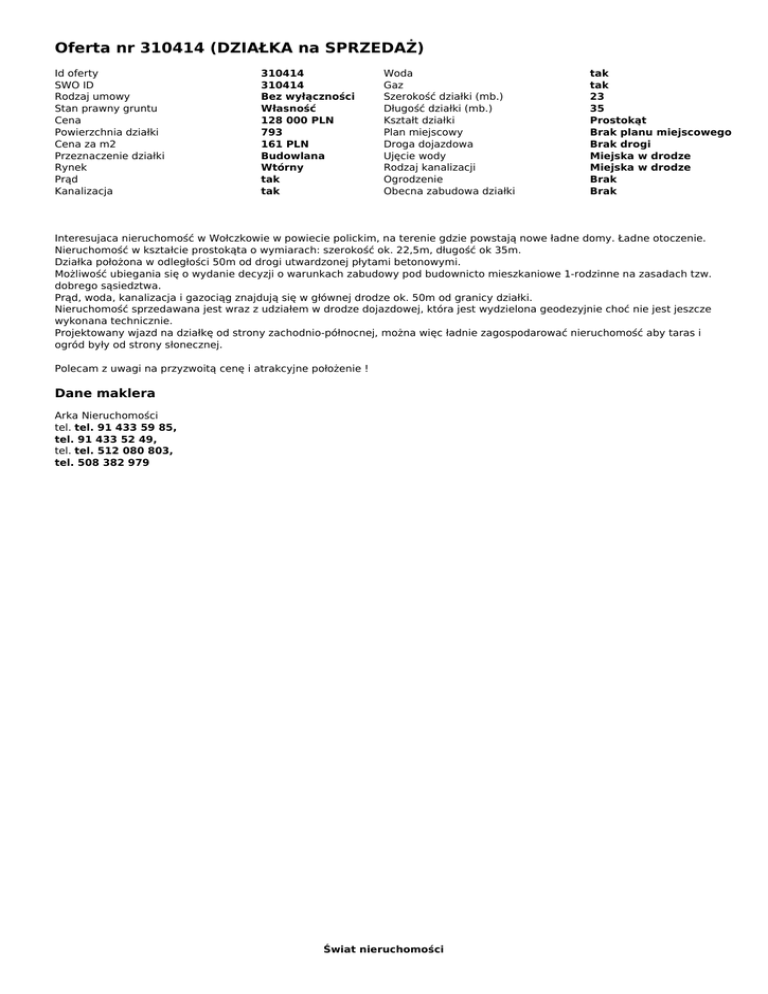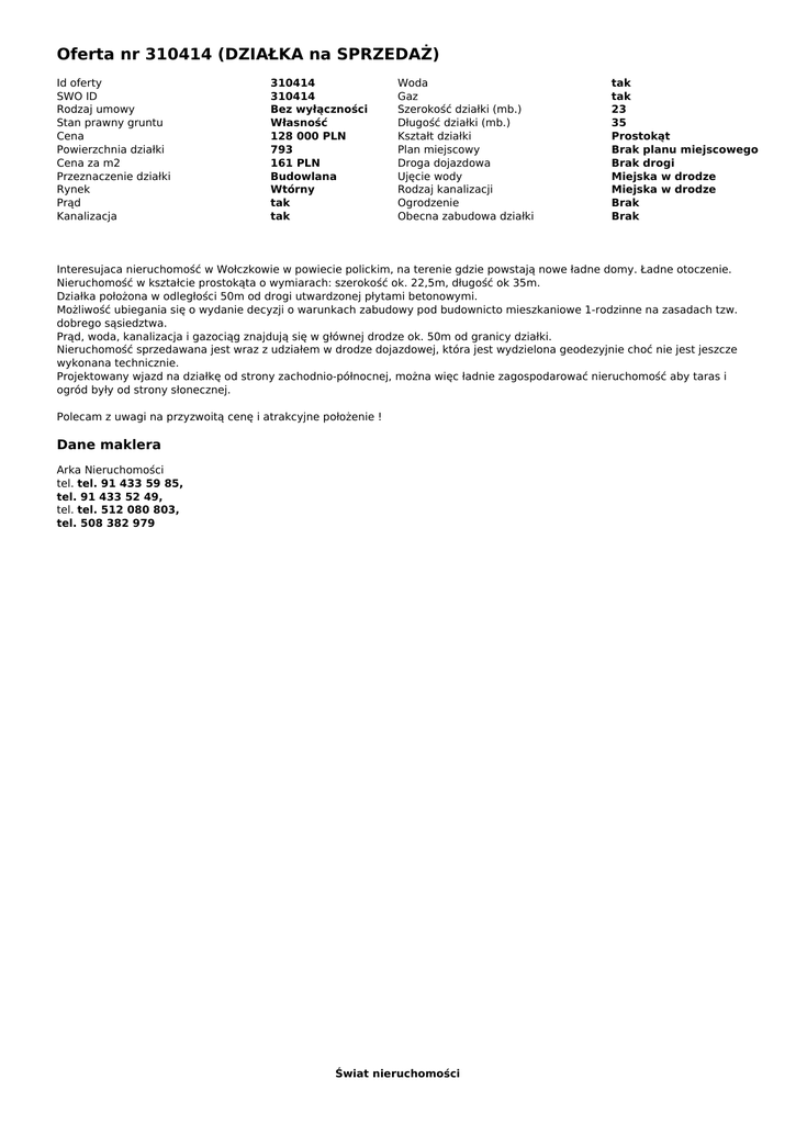 Oferta nr 310414 (DZIAŁKA na SPRZEDAŻ)