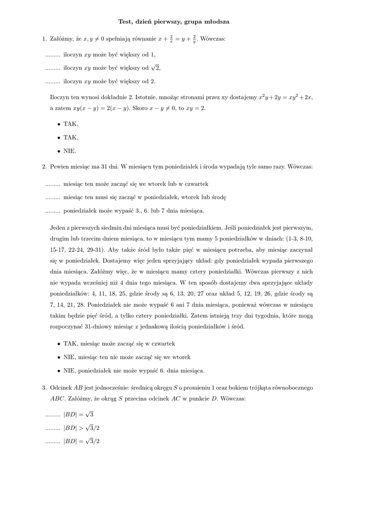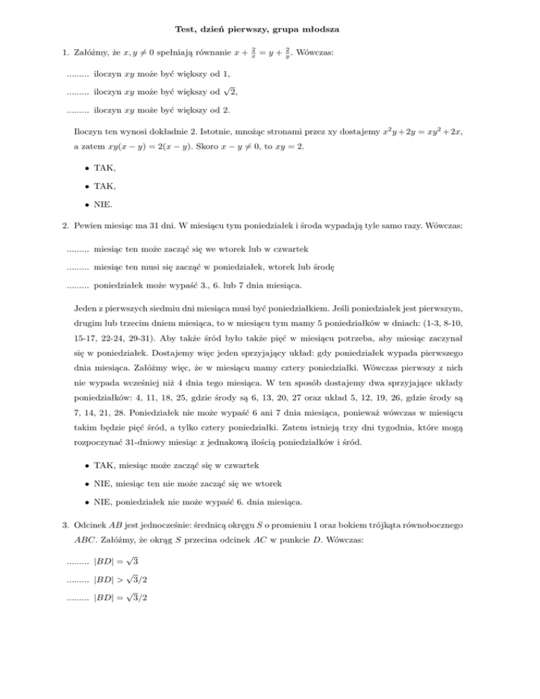 a zatem xy(x − y) = 2(x − y). Skoro x − y 6= 0, to xy = 2.