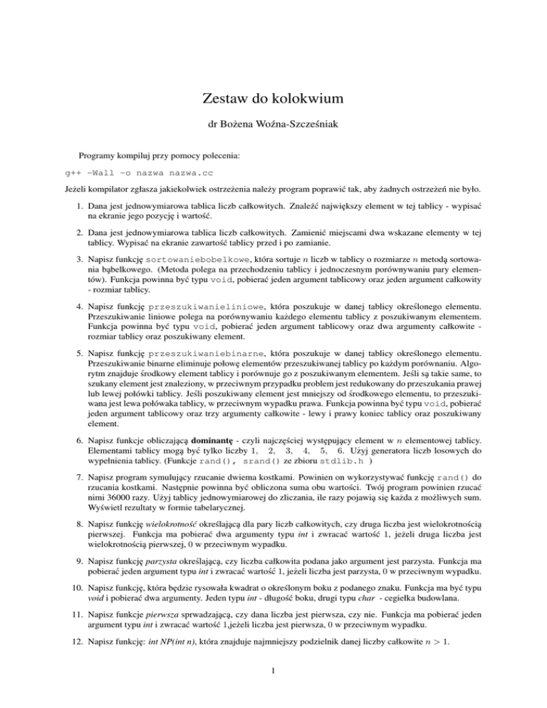 rozmiarze n. Przetestuj ja˛ w prostym programie.