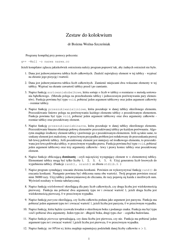 Jeżeli kompilator zgłasza jakiekolwiek ostrzeżenia należy program poprawić tak, aby żadnych ostrzeżeń nie było.