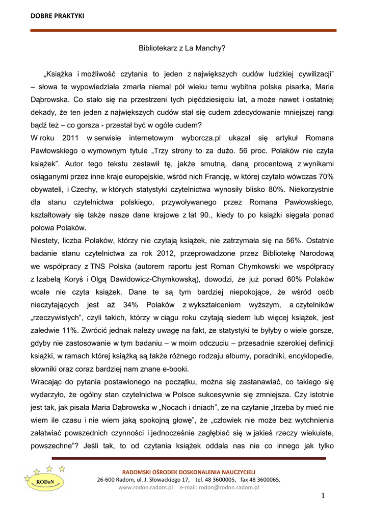 DOBRE PRAKTYKI 1 Bibliotekarz z La Manchy? „Książka i