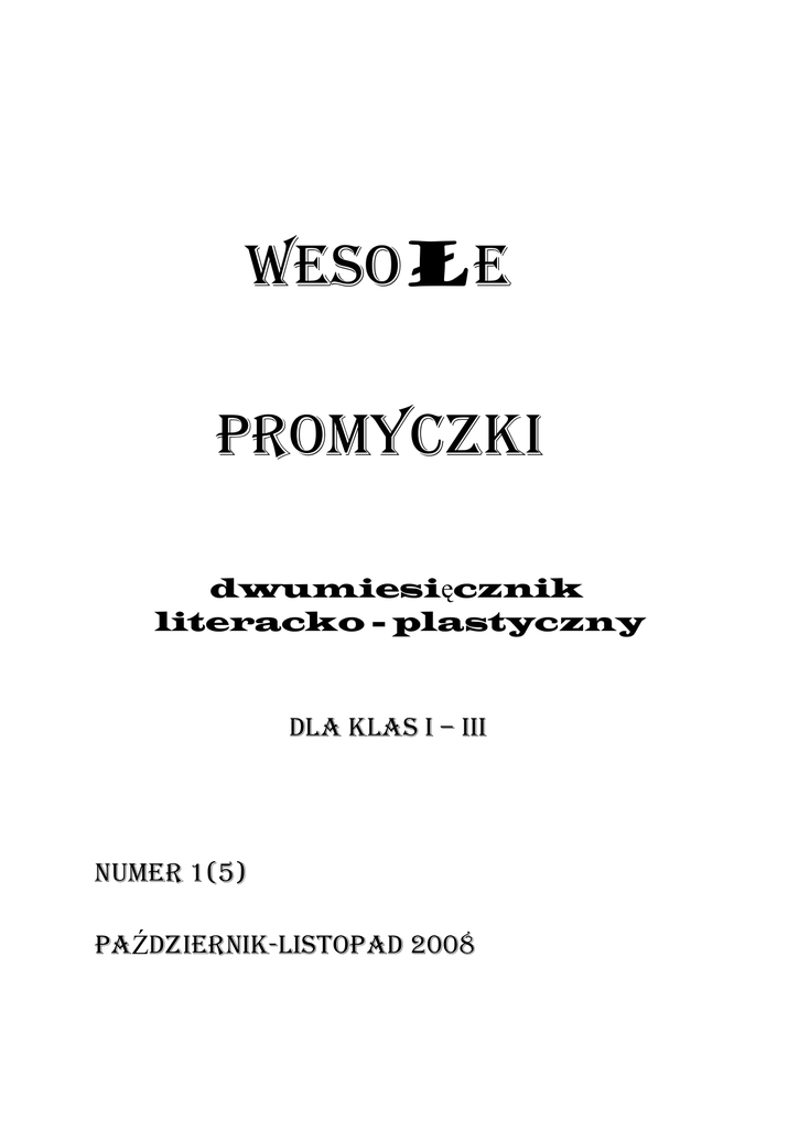 WESOłE PROMYCZKI dwumiesięcznik literacko - plastyczny DLA KLAS I – III NUMER 1(5) PAŹDZIERNIK-LISTOPAD 2008 Witamy wszystkich czytelników w nowym roku szkolnym 2008/2009. Mamy nadzieję, Ŝe i w tym roku będziecie chętnie czytać nasze pisemko. Zachęcamy do udziału w konkursach i do współtworzenia kolejnych numerów. ☼☼☼☼☼☼☼☼☼☼☼☼☼☼☼☼☼☼☼☼☼☼☼☼☼☼☼ We wrześniu zaprosiliśmy was do wzięcia udziału w konkursie literackim ,,Wakacyjna przygoda’’. MoŜna było napisać opowiadanie, ułoŜyć wiersz oraz wykonać pracę plastyczną. Nadesłane prace zostały zaprezentowane w holu szkoły. WyróŜnione prace zamieszczamy na łamach gazetki. Oto one: WAKACJE Wakacje spędziłam w Dalmacji, która jest częścią Chorwacji. Mieszkałam na wyspie o nazwie Korczula. Mieliśmy duŜe szczęście, bo gospodarzami okazali się bardzo mili ludzie. Pani gospodyni piekła nam ciasteczka, robiła naleśniki z marmoladą i częstowała nas cukierkami. Natomiast pan gospodarz zabierał nas na ryby i zapraszał na kolację. Byliśmy na róŜnych plaŜach piaszczystych i kamienistych. Nurkując oglądałam świat podwodny. Trudno mi opisać, co tam widziałam: róŜne rybki, dziwne roślinki i podwodne wielkie gąsienice. Oglądałam przepiękne wodospady w parkach narodowych rzeki Krka i Plitrickie jeziora. Zwiedzałam jedne z piękniejszych miast Chorwacji. Te wakacje były dla mnie fantastyczną przygodą i mam nadzieję, Ŝe kiedyś znowu się wybiorę do Chorwacji. Teraz mogę sobie tylko wspominać, oglądając zdjęcia, które przywiozłam. Ania Chwalibóg klasa III a 2 Moje wakacje W czasie wakacji miałam duŜo przygód. Byłam w Kołobrzegu. Pływaliśmy statkiem po morzu, były duŜe fale. Zwiedzałam miasto, bardzo mi się podobało. Poszliśmy na latarnię morską. Było tam duŜo schodów ale dałam radę. Na górze były piękne widoki, tylko był silny wiatr, Widziałam morze, statki i domy. Zwiedzałam teŜ Trzęsacz i poznałam legendę tego miasta. Moje wakacje były udane. Malwina Gorgol klasa II a Moja wakacyjna przygoda Byliśmy w Wadowicach, gdzie mój tata ma starą, drewnianą chatkę (jallne).Następnego dnia rano poszliśmy do centrum miasta na zakupy. Doszliśmy do skrzyŜowania przed rzeką Skawą. Nagle zatrzymał się samochód cięŜarowy. Z tyłu nadjechał samochód osobowy. Kierowca tego samochodu nie zauwaŜył i nie zdąŜył zahamować. Uderzył w tylną część cięŜarówki. Byliśmy tak blisko, Ŝe części od maski prawie w nas uderzyły. Na szczęście kierowcy nic się nie stało. To mnie nauczyło, Ŝe trzeba uwaŜać na drodze. Leszek Kołodziejczyk klasa III b Moje wakacje Czasem świeci słońce, czasem pada deszcz samochodem jechać fajnie jest. Właśnie jadę do Chorwacji Czego moŜna chcieć! Adam Batko klasa III b 3 Kącik humoru ☺☺☺ Przybiega dzieciak na stację benzynową z karnistrem: - Dziesięć litrów benzyny, szybko! - Co jest? Pali się? - Tak, moja szkoła. Ale trochę jakby przygasa. ☺☺☺ Ojciec piątki dzieci wygrał zabawkę w loterii. Zawołał swoje dzieciaki i spytał, które z nich powinno otrzymać prezent: - Kto jest najbardziej posłuszny? – spytał – Kto nigdy nie pyskuje mamie? Kto robi wszystko, co kaŜe? Pięć głosików odpowiedziało jednocześnie: - Dobra tato, moŜesz zatrzymać zabawkę. ☺☺☺ Romuś słyszał rodzinną legendę, Ŝe jego ojciec, dziadek a nawet pradziadek w dniu swoich urodzin chodzili po pobliskim jeziorze. Postanowiwszy przekonać się o jej prawdziwości w swoim przypadku, wypłynął w dniu swoich urodzin łódką na środek jeziora przełoŜył nogi przez burtę… i omal się nie utopił. - Romuś – westchnęła babcia, kiedy go przywieziono do domu – twój ojciec, dziadek i pradziadek, urodzili się w styczniu, ty – lipcu. Łukasz Jedziniak kl. III a 4 Kacik poligloty Zachęcamy do praktycznej i przyjemnej nauki języka angielskiego. PoniŜej prezentujemy: JOKE STORIES A father knocks at his son’s door. - ,,Get up! You have to go to school!’’ - ,, No papa. I don’t want to go to school!’’ - ;; And why not?’’ - ,,For three reasons: 1) school is boring; 2) the kids tease me, and 3) I hate school! - ,,Well, I’ll give you three reasons to go: 1) because it’s your duty 2) because you’re 45 years old, and 3) because you’re the principal! KĄCIK MATEMATYCZNY Zadanie 1. Posługując się tylko dodawaniem napisz liczbę 28 przy pomocy pięciu dwójek, a liczbę 1000 przy pomocy ośmiu ósemek. Zadanie 2. Uzupełnij puste pola kwadratów, aby suma rzędów i kolumn wynosiła 18. 5 8 9 10 6 6 4 7 9 7 Zadania przesłał uczeń klasy III a Daniel Wójtowicz. Rozwiązanie zadań znajdziecie w następnym numerze gazetki. 5 Przeprowadziliśmy krótką ankietę na temat przyjaźni, co dla nas oznacza to słowo. ●Wspierać się w trudnych sytuacjach. ( Justyna kl. III b gimnazjum ) ●MoŜna na siebie liczyć. ( Adrian KL. IV b ) ● Przyjaciel nie zdradzi tajemnicy drugiego człowieka. ( Kasia VI c) ● Przyjaźń- lubić przyjaciół i im pomagać. ( Patryk l. V a ) ● Przyjaźń to jedna z najwspanialszych rzeczy, które moŜe spotkać człowieka. Przyjaźń to zaufanie, poczucie bezpieczeństwa, wspólna zabawa, rozmowy, pomoc w kaŜdej sytuacji. ( pani Ewa ) KąCIK ORTOGRAFICZNY Czas na wyrazy z ś PoniŜej prezentujemy krótkie opowiadanie z wyrazami z Ŝ, ułoŜone przez Daniela Wójtowicza. Pewnego dnia w domu przy ulicy śaczkowej pan BłaŜej zobaczył Ŝółtego motyla. Motyl Ŝył na łące pełnej Ŝonkilków. Miał tam swoich przyjaciół: Ŝuka i Ŝabę. Pan BłaŜej postanowił zobaczyć, jak motyl urządzał swoje mieszkanie. Gdy doszedł na łąkę poznał przyjaciół motyla. Nagle do Ŝaby podleciała osa i ją uŜądliła. śaba jęczała z bólu ale pan BłaŜej wiedział co robić. Szybko pobiegł do domu po cebule. Potem przyłoŜył ją do miejsca uŜądlenia. Gdy Ŝabę przest
