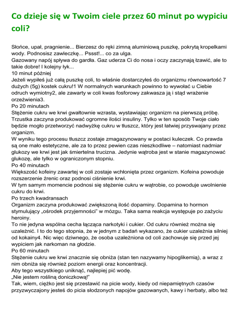 Co dzieje się w Twoim ciele przez 60 minut po wypiciu coli?