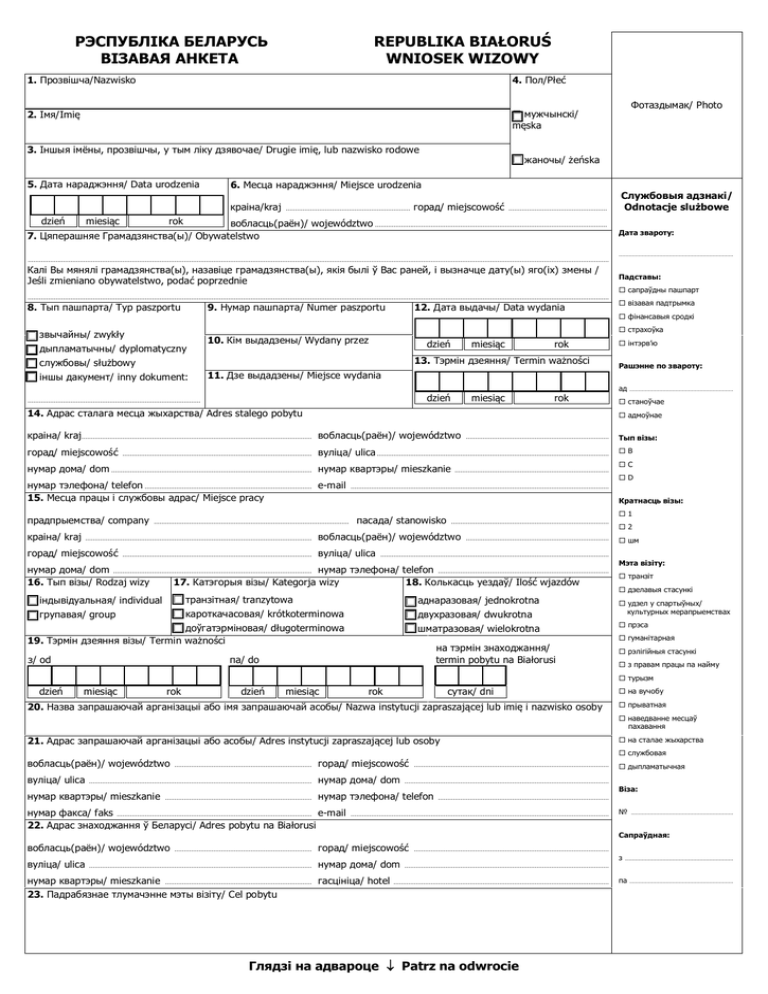 ВІЗАВАЯ АНКЕТА ДЛЯ ЎЕЗДУ Ў РЭСПУБЛІКУ БЕЛАРУСЬ