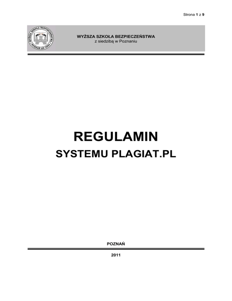 regulamin systemu plagiat.pl - Wyższa Szkoła Bezpieczeństwa