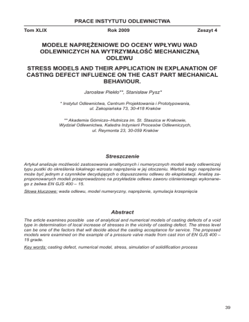 modele naprężeniowe do oceny wpływu wad odlewniczych na