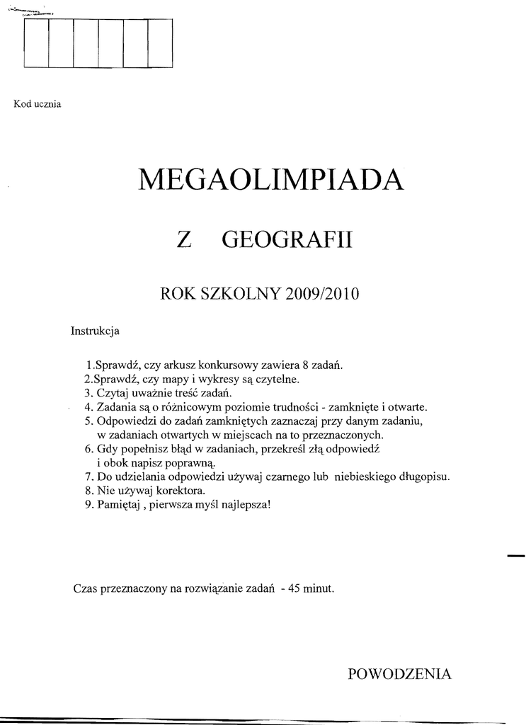 GEOGRAFII ROK SZKOLNY 2009/2010 Instrukcja