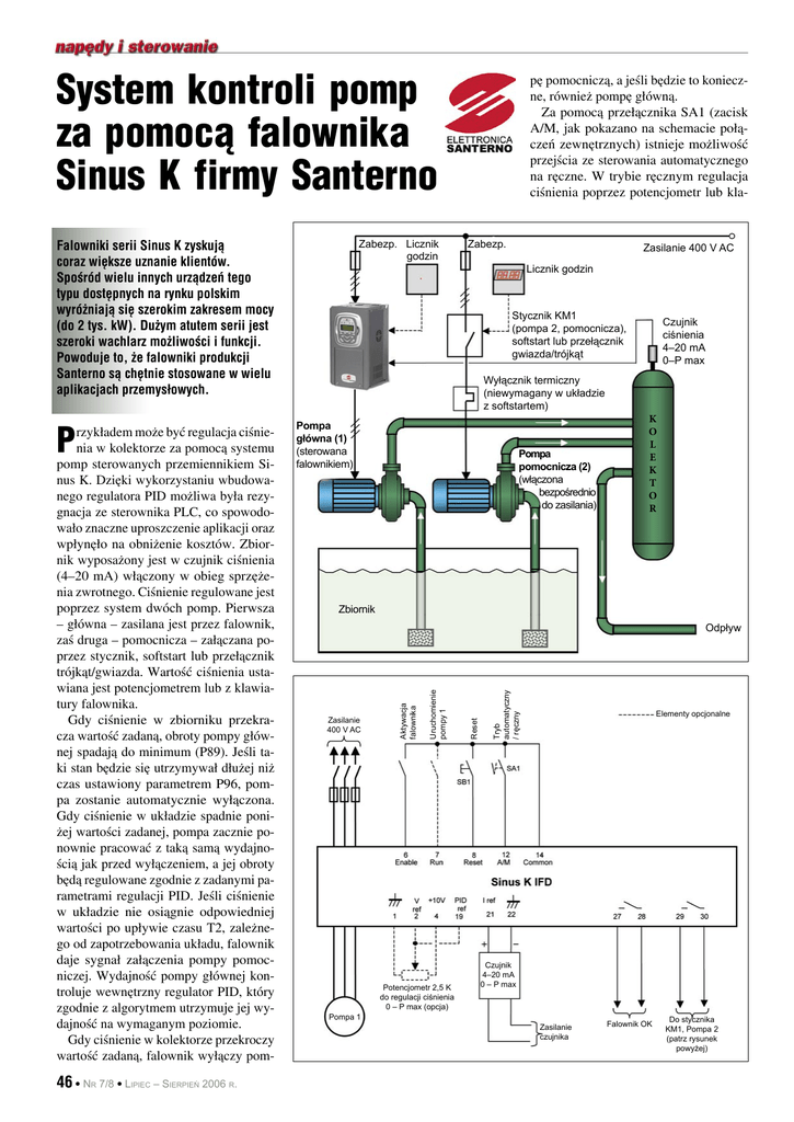 System kontroli pomp za pomocą falownika Sinus K