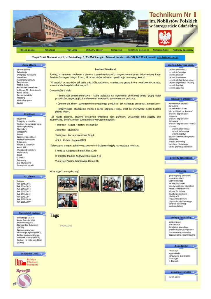 Strona główna Rekrutacja Plan Lekcji Wirtualny Spacer Zastępstwa Szkoły dla Dorosłych Najlepsza Klasa Partnerzy-Sponsorzy Zespół Szkół Ekonomicznych, ul.Sobieskiego 6, 83-200 Starogard Gdański, tel./fax +48 (58) 56 222 49, e-mail: [email protected] Menu Główne Strona główna Rekrutacja Olimpiady maturalne i zawodowe Regionalny Konkurs Recytatorski Krótko o ZSE Kształcenie zawodowe Jubileusz 50 - lecia szkoły Kadra szkoły Promocja szkoły Przetargi Wirtualny spacer Szukaj Uczniowie Stypendia Osiągnięcia uczniów Konkurs na najlepszą klasę Samorząd szkolny Plan lekcji Zastępstwa Matura Egzaminy zawodowe Praktyki zawodowe E-dziennik Poczta dla uczniów Kanał RSS Wykaz podręczników Wydarzenia Sport Gazetka E-learning Gry edukacyjne Strony nauczycieli oferta edukacyjna szkoły Business Weekend Turniej, a zarazem szkolenie z biznesu i przedsiębiorczości zorganizowane przez Młodzieżową Radę Powiatu Starogardzkiego. 2 dni , 19 uczestników zabawa i rywalizacja do samego końca! Wszystkich uczestników (19 osób z 6 szkół) podzielono na mieszane grupy, które rywalizowały ze sobą w niestandardowych konkurencjach. ∙ Symulacja przedsiębiorstwa – która polegała na wykonaniu określonej przez grupę ilości produktów, negocjacji z handlowcem i wykonaniu zamówienia w praktyce. ∙ Commercial show – stworzenie innowacyjnego produktu i jak najlepsza prezentacja przed jury. ∙ Kreatywność- stworzenie mostu z kartki papieru i kleju, miał on wytrzymać ciężar butelki pełnej wody . Za każde zadanie, drużyna dostawała określoną ilość punktów. Ostatniego dnia zostały one zsumowane. Zwieńczeniem turnieju było wręczenie nagród : 1 miejsce – Tablet + zestaw akcesoriów 2 miejsce – Słuchawki 3 miejsce – Karta prezentowa Empik 4,5,6 – Kubek z logiem MRPS Dziewczyny z naszej szkoły wraz ze swoimi drużynamizajęły następujące miejsca: programy i projekty Wybieram przyszłość zawodową szkolne koło caritas "der schlüssel zur karriere" praktyki zagraniczne hiszpania praktyki zagraniczne portugalia praktyki zagraniczne - wielka brytania technik ekonomista technik informatyk technik logistyk polsko - niemiecka wymiana młodzieży projekt etwinning zachowaj równowagę szkoła promująca zdrowie I miejsce Małgorzata Bendik klasa 2 tb IV miejsce Paulina Andrykowska klasa 2 tb projekty zakończone V miejsce Paulina Wiśniewska klasa 2 tb biblioteka godziny pracy biblioteki o nas w mediach uczniowie piszą katalog biblioteki koło sympatyków biblioteki nasze zainteresowania lektury do matury zasady sporządzania bibliografii. regulamin biblioteki regulamin internetowego centrum informacji multimedialnej Archiwum Galeria Rok 2015/2016 Rok 2014/2015 Rok 2013/2014 Rok 2012/2013 Rok 2011/2012 Rok 2010/2011 Rok 2009/2010 Rok 2008/2009 Najczęściej czytane ekonomista informatyk analityk handlowiec obsługi turystycznej organizacji reklamy logistyk spedytor Oto niektóre z nich: Kilka zdjęć z naszych zajęć Rekrutacja (38263) Kadra Zespołu Szkół Ekonomicznych w Starogardzie Gdańskim (24071) Egzamin maturalny informacje ogólne (19983) Zestaw podręczników na nowy rok szkolny (12609) Konkurs Na Najlepszą Klasę (10441) technik technik technik technik technik technik technik technik Tags pedagog i psycholog WYDARZENIA godziny pracy profilaktyka doradztwo zawodowe prezentacje multimedialne dostosowania maturalne dostosowania egzaminacyjne dla rodziców Przydatne Linki rekrutacja wywiadówki konsultacje z rodzicami plan zajęć e-dziennik dokumenty szkolne statut szkoły liczba odwiedzin odwiedziło nas: 2670539 imieniny Halszki, Heleny, Karola Do końca roku szkolnego pozostało 112 dni. przydatne linki europejski fundusz społeczny Zespół Szkół Ekonomicznych ul.Sobieskiego 6 83-200 Starogard Gdański tel./fax +48 (58) 56 222 49 e-mail: [email protected] Czas generowania strony: 0.249s.