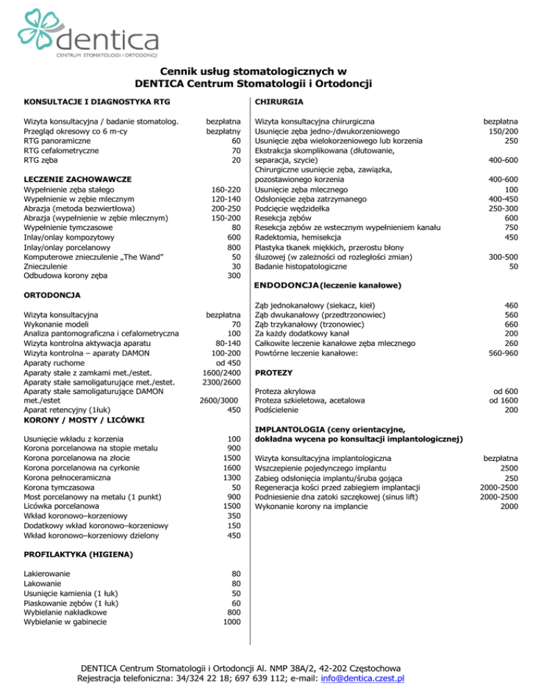 Cennik - DENTICA - Centrum stomatologii i ortodoncji