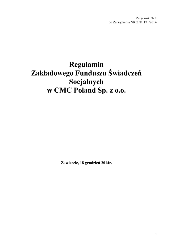REGULAMIN ZFŚS CMC Poland Sp. z o.o.