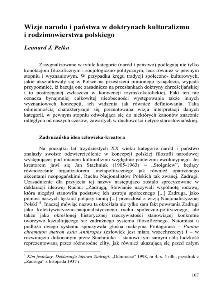 Wizje narodu i państwa w doktrynach kulturalizmu i