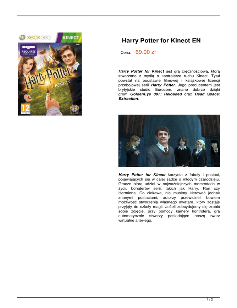 Harry Potter for Kinect EN Cena: 69.00 zł Harry Potter for Kinect jest grą zręcznościową, którą stworzono z myślą o kontrolerze ruchu Kinect. Tytuł powstał na podstawie filmowej i książkowej licencji przebojowej serii Harry Potter. Jego producentem jest brytyjskie studio Eurocom, znane dobrze dzięki grom GoldenEye 007: Reloaded oraz Dead Space: Extraction. Harry Potter for Kinect korzysta z fabuły i postaci, pojawiających się w całej sadze o młodym czarodzieju. Gracze biorą udział w najważniejszych momentach w życiu bohaterów serii, takich jak Harry, Ron czy Hermiona. Co ciekawe, nie musimy kierować jednak znanymi postaciami, autorzy przewidzieli bowiem możliwość stworzenia własnego awatara, który zostaje przyjęty do szkoły magii. Jeżeli zdecydujemy się zrobić sobie zdjęcie, przy pomocy kamery kontrolera, gra automatycznie stworzy posiadające naszą twarz wirtualne alter-ego. 1/2 Podobnie jak wiele innych tytułów na Kinecta, jak Kinect Star Wars, produkcja jest zestawem luźno połączonych ze sobą zręcznościowo-logicznych minigier. Wymagają one od graczy pewnej dozy wysiłku fizycznego, bowiem komendy wydajemy najczęściej szybko poruszając rękoma, skacząc lub kucając. W trakcie rozgrywki, gracze między innymi próbują złapać złotego znicza na meczu quidditcha, rzucają zaklęcia za pomocą własnoręcznie wybranej i kupionej różdżki, siłują się z mandragorą na lekcji zielarstwa lub stawiają czoło Lordowi Voldemortowi. Bawić będziemy się zarówno samotnie jak i wspólnie na jednym ekranie z innymi graczami, w trybie kooperacji lub przeciw sobie. Zobacz wideo: 2/2 Powered by TCPDF (www.tcpdf.org)