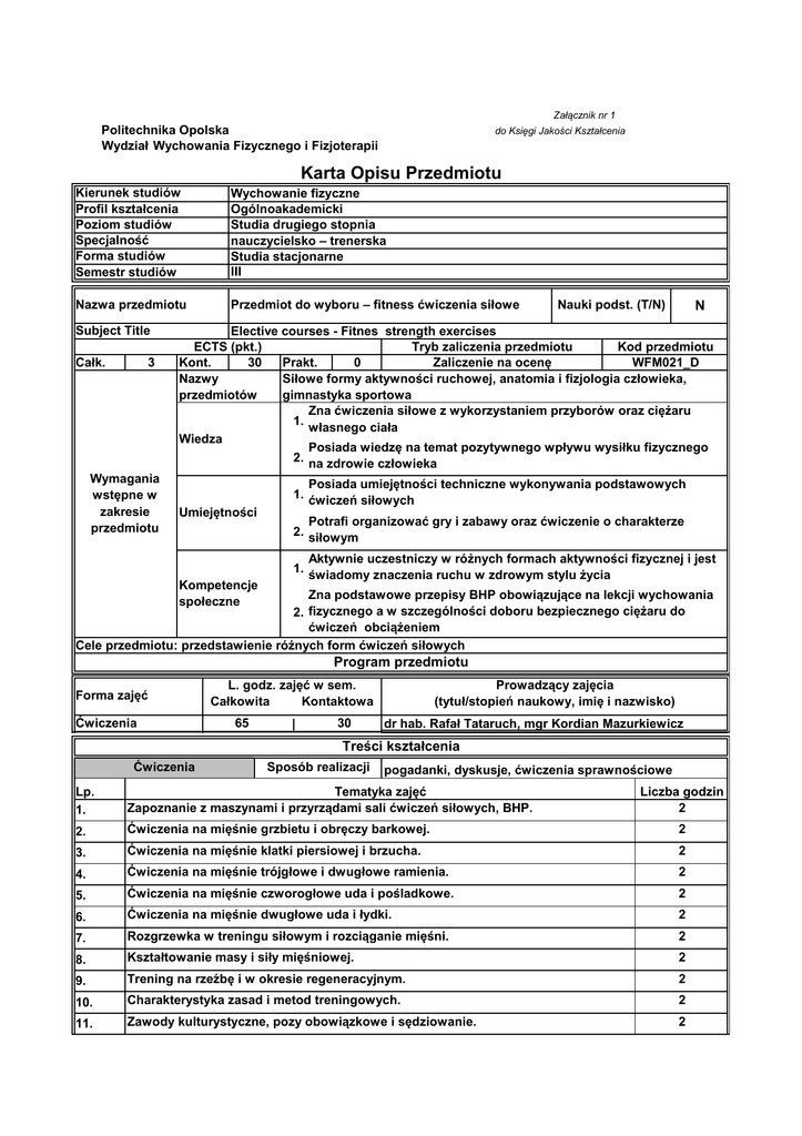 fitness ćwiczenia siłowe - Wydział Wychowania Fizycznego i