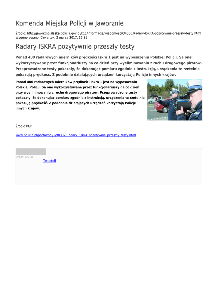 Komenda Miejska Policji w Jaworznie Radary ISKRA pozytywnie