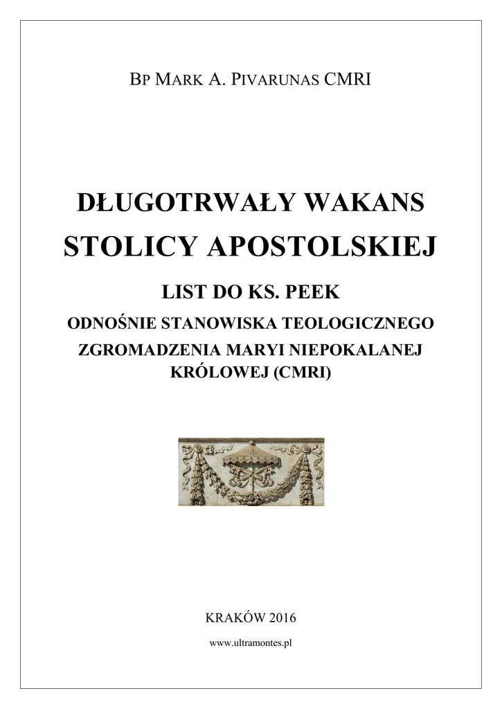 2) Bp Mark A. Pivarunas CMRI, a) Kościół katolicki i jurysdykcja. b) Sedewakantyzm. c)