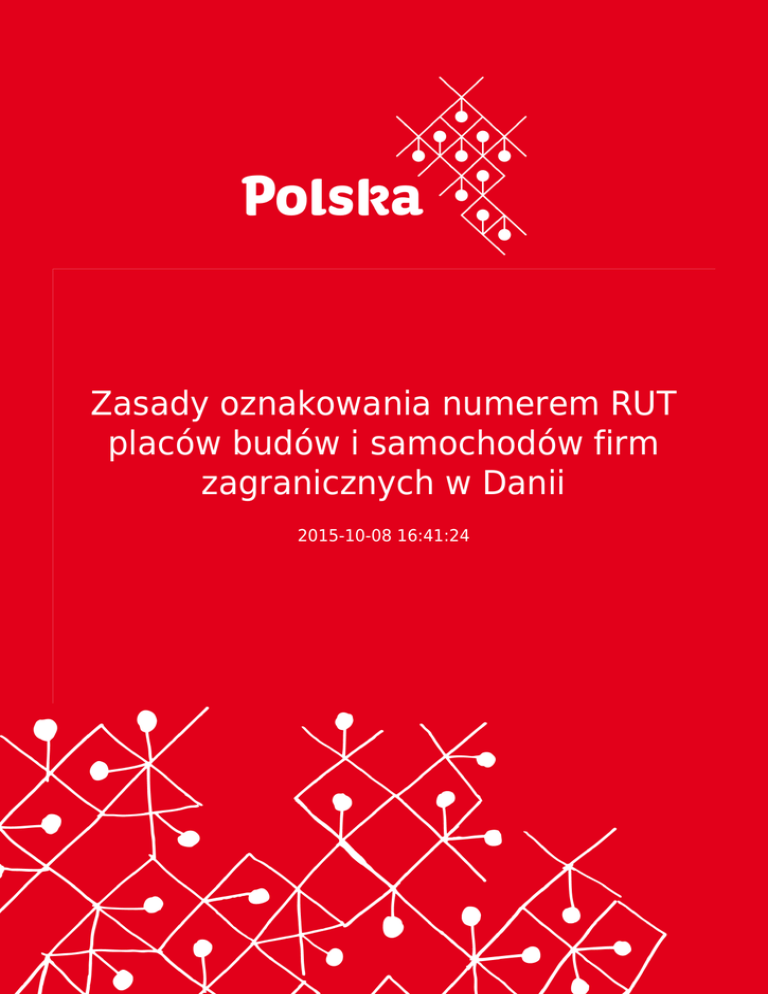 Zasady oznakowania numerem RUT placów budów i samochodów firm zagranicznych w Danii 2015-10-08 16:41:24 2 Firma nie ma obowiązku wystawiania tablicy na placu budowy i oznakowania pojazdu zagranicznego, który jest wykorzystywany do działalności gospodarczej przez firmę zagraniczną na terenie Danii. Tablice informacyjne na budowach Zgodnie z § 78 duńskiej Ustawy o VAT Nr 106 z 23.01.2013, której tekst w języku duńskim dostępny jest na stronie https://www.retsinformation.dk/Forms/r0710.aspx?id=144991, na budowach (na terenie prywatnym), na którym firma stawia nową konstrukcję lub/ i wykonuje remont, modernizuje, przebudowuje itp. nieruchomość, firma zagraniczna zobowiązana jest umieścić tablicę infomacyjną, na której będzie widniała nazwa firmy i jej numer z rejestru RUT, a firma duńska odpowiednio swoją nazwę i numer CVR. Tablica musi być umieszczona na takiej wysokości, aby możliwe było odczytanie informacji znajdujących się na niej z publicznie dostępnej drogi. Nie istnieją wymogi określające wielkość, wymiary, typ tablicy itp. Ważne, żeby tablica była widoczna w okresie, w którym firma prowadzi prace na budowie. Jeśli w tym samym czasie na budowie jest więcej firm, które wykonują prace, firmy te mogą mieć wspólną tablicę. Wtedy na tablicy musi być umieszczona nazwa każdej firmy i jej numer. Firma nie ma obowiązku wystawiania tablicy, jeżeli spełniony jest chociaż jeden z poniższych warunków: 1. 2. 3. 4. prace mogą być wykonane w ciągu jednego dnia roboczego, prace budowlane prowadzone są na terenie publicznym, jeśli wartość kontraktu nie przekracza 50.000 DKK łącznie z VAT, oznakowanie nie jest możliwe, ponieważ praca wykonywana jest na budowie obok bloku mieszkalnego na terenie o gęstej zabudowie. Oznakowanie pojazdów firm zagranicznych Zgodnie z § 7, pkt 7 Ustawy o rejestracji samochodu Nr 16 z 01.09.2013, której tekst w języku duńskim dostępny jest na stronie https://www.retsinformation.dk/Forms/r0710.aspx?id=144991 pojazd zagraniczny, który jest wykorzystywany do działalności gospodarczej przez firmę zagraniczną na terenie Danii, musi mieć widoczne udokumentowane numery z rejestracji firmy w systemie RUT, umieszczone za przednią szybą samochodu. Źródło: Duński Urząd Działalności Gospodarczej, lipiec 2014 3