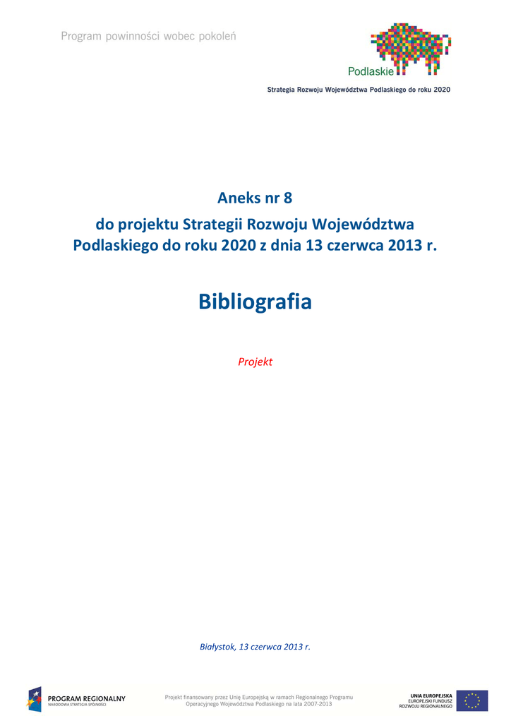 Aneks nr 8 Bibliografia - Strategia Rozwoju Województwa