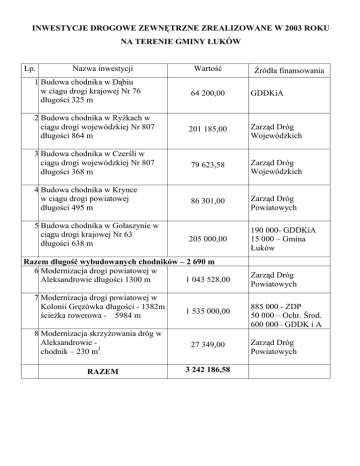 INWESTYCJE DROGOWE ZEWNĘTRZNE