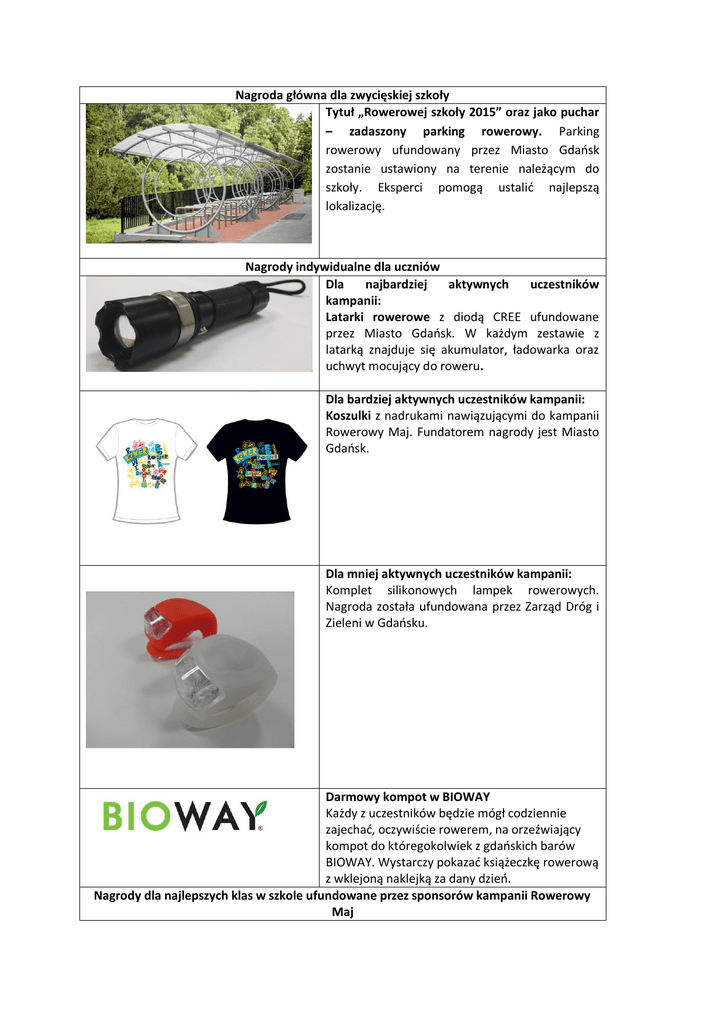 Nagrody dla najlepszych klas w szkole ufundowane przez sponsorów kampanii Rowerowy