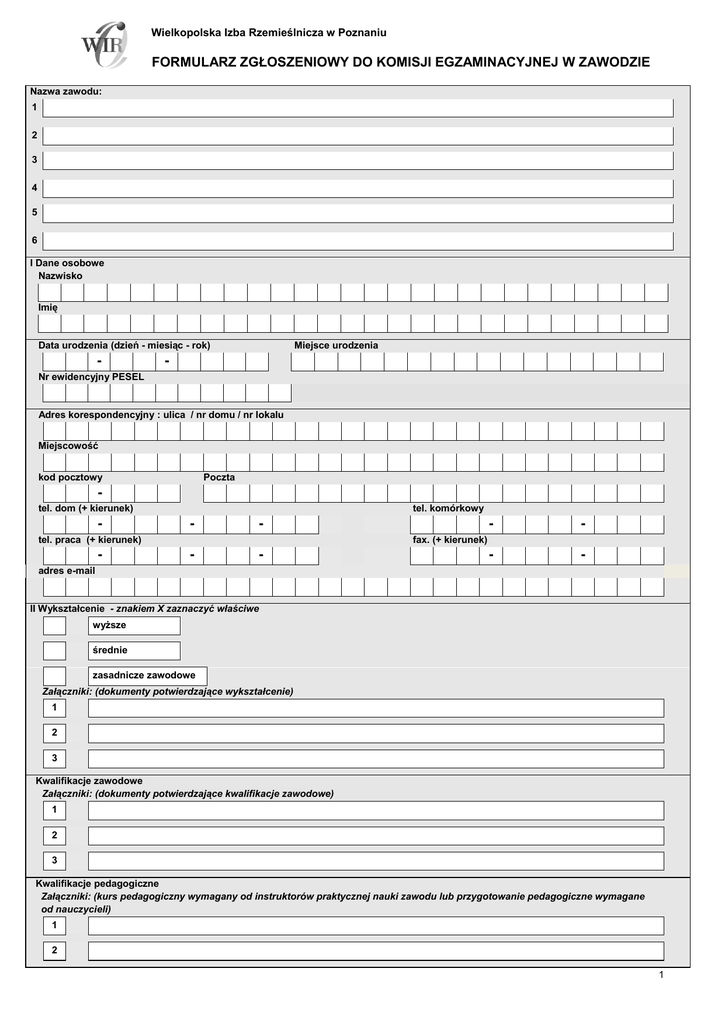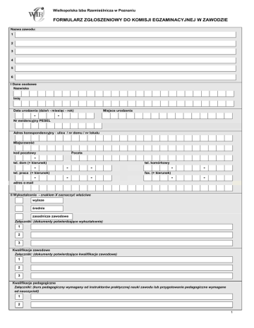 formularz zgłoszeniowy do komisji egzaminacyjnej w zawodzie