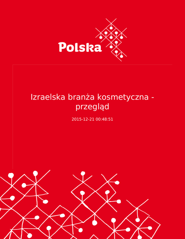 Izraelska branża kosmetyczna przegląd 2015-12-21 00:48:51 2 Izraelski rynek kosmetyczny charakteryzuje się bardzo silną konkurencyjnością między drogimi wyrobami uznanych firm i marek międzynarodowych, tańszymi produktami sprowadzanymi z całego świata oraz kosmetykami izraelskimi. Wachlarz oferowanych wyrobów jest niezwykle szeroki, począwszy od tradycyjnych specyfików ludowych, poprzez różne produkty funkcjonalne i lecznicze, aż po wyroby najbardziej luksusowe. Izraelski rynek kosmetyczny charakteryzuje się bardzo silną konkurencyjnością między drogimi wyrobami uznanych firm i marek międzynarodowych, tańszymi produktami sprowadzanymi z całego świata oraz kosmetykami izraelskimi. Wachlarz oferowanych wyrobów jest niezwykle szeroki, począwszy od tradycyjnych specyfików ludowych, poprzez różne produkty funkcjonalne i lecznicze, aż po wyroby najbardziej luksusowe. Izraelski przemysł kosmetyczny charakteryzuje się rozwojem nowych, małych firm, obok dużych i od lat osadzonych na rynku przedsiębiorstw. Produkują one wyroby do pielęgnacji włosów i ciała, w postaci płynów, maści, kremów, aerozoli oraz w formie stałej. Siła izraelskiej branży kosmetycznej wynika głównie z tworzenia oryginalnych wyrobów bazujących na wyjątkowych właściwościach leczniczych minerałów z Morza Martwego, przy jednoczesnym wykorzystaniu naturalnych składników i tradycyjnej kosmetyki. W świetle trwałego i rosnącego popytu oraz renomy, jaką izraelskie kosmetyki już zdobyły w świecie, oraz dzięki stosunkowo niskim progom, jakie należy pokonać, aby wejść na nowy rynek lub wprowadzić nowy wyrób, w Izraelu rozwija się coraz bardziej aktywna działalność twórców opracowujących nowe wyroby, wykorzystujących nowoczesne metody marketingowe i zarządzania biznesowego i zlecających produkcję istniejącym już przedsiębiorstwom kosmetycznym, posiadającym niezbędne uprawnienia. W Izraelu istnieje około 120 przedsiębiorstw uprawnionych w sposób ogólny do wytwarzania wyrobów kosmetycznych (uprawnienia te przyznaje Ministerstwo Zdrowia), a każdy nowy wyrób musi uzyskać odrębną akceptację tegoż ministerstwa w sposób szczególny. Obecnie zarejestrowanych jest około 20.500 takich wyrobów. Jednocześnie z szybkim rozwojem branży kosmetycznej w Izraelu trwa dostosowywanie procedur produkcji i testowania kosmetyków do standardów Światowej Organizacji Zdrowia (WHO) i amerykańskiej Agencji ds. Żywności i Leków (FDA). Roczna wartość sprzedaży izraelskiej branży kosmetycznej, zatrudniającej prawie 7.000 pracowników, wynosi około 1 mld $. Eksport izraelskich kosmetyków wzrósł w roku 2012 o 13,5% i wyniósł 316,4 mln $, w porównaniu do 278,6 mln $ w roku 2011 i 254,6 mln $ w roku 2010. W roku 2012 działało 90 spółek spółek kosmetycznych sprzedających swe wyroby także za granicę. Osiem z nich wyeksportowało wyroby na sumę ponad 10 mln $ każda, a łącznie ich eksport stanowił 66% eksportu całej branży. 17 spółek sprzedało za granicę towary o wartości od 2 do 10 mln $ każda, a łącznie ich eksport stanowił 27% eksportu branży. Kolejne 5% eksportu przypada na 15 spółek eksportujących za sumę od 0,5 do 2 mln $. Izraelski eksport kosmetyków w latach 2008-2012 3 Eksport ogółem w mln $ 2008 2009 2010 2011 2012 197,3 211,8 245,6 278,6 316,4 7,3% 16,0% 13,4% 13,5% Wielkość zmian W roku 2012 eksport kosmetyków do Ameryki Północnej stanowił 41% eksportu całej branży, eksport do krajów Unii Europejskiej 27%, eksport do Europy Środkowo-Wschodniej 16%, do Azji 6%, do Australii i Oceanii 2% i do Południowej Ameryki 2%. Największymi importerami izraelskich kosmetyków były następujące kraje: Stany Zjednoczone – 37%, Rosja – 11%, Wielka Brytania – 5%, Niemcy – 5%, Kanada – 4%, Francja – 4%, Ukraina – 4%, Japonia – 2%, Holandia – 2%, Australia – 2% i Norwegia – 2%. Warto zauważyć, że w ciagu ostatnich pięciu lat eksport izraelskich kosmetyków do USA uległ podwojeniu pod względem wartości i wzrostowi o 30% pod względem udziału w ogólnym eksporcie. Wielkość eksportu do krajów Unii Europejskiej jest w zasadzie stabilna pod względem wartości, ale jego udział w całości eksportu uległ znacznemu zmniejszeniu ze względu na wzrost sprzedaży do innych regionów świata. Eksport do Rosji jest stabilny. Eksport do krajów Azji i krajów EFTA uległ podwojeniu, choć wartościowo sprzedaż do tych regionów jest nadal niewielka. Udział w eksporcie kosmetyków w latach 2008-2012 i jego zmiany 2008 2012 % zmian Ameryka Północna 31,3% 41,3% +32,0% Unia Europejska 42,7% 26,8% -37,2% Europa Środkowo-Wschodnia 17,6% 15,9% -9,7% Azja 3,1% 6,4% +106,5% EFTA 1,4% 2,7% +92,9% Pozostałe 3,9% 6,8% +74,4% 4 Ogółem w mln $ 197,3 316,4 Wraz ze stale i szybko rosnącym eksportem izraelskich kosmetyków utrzymuje się także spory import, którego wartość w roku 2012 wyniosła 251,1 mln $. Przeważająca jego część, bo aż 79%, pochodzi z krajów Unii Europejskiej, 11% z Ameryki Północnej, 3% z Azji, 3% z krajów EFTA i 3% z pozostałych krajów europejskich. W ostatnich latach notowano spore wahania importu (od 8-procentowych spadków do 21-procentowych wzrostów), jednak niezmienny pozostaje tak znaczny udział importu z Europy. Główne źródła importu kosmetyków do Izraela to Francja – 43%, Niemcy – 12%, USA – 10%, Włochy – 8%, Wielka Brytania – 5%, Hiszpania – 4%, Szwajcaria – 3%, Turcja – 2%, Belgia – 2%, Szwecja – 2% i Chiny – 2%. Wielkości te nie uległy w ostatnich latach zasadniczej zmianie. Izraelski import kosmetyków w latach 2008-2012 Import ogółem w mln $ Wielkość zmian 2008 2009 2010 2011 2012 216,3 205,0 224,0 271,8 251,1 -5% 9% 21% -8% Do największych izraelskich producentów i eksporterów kosmetyków należą: Ahava Dead Sea Laboratories Ltd. 1 Arava St., 7010000 Airport City Lod tel.: +972-3-5571111 fax: +972-3-5581424 [e
