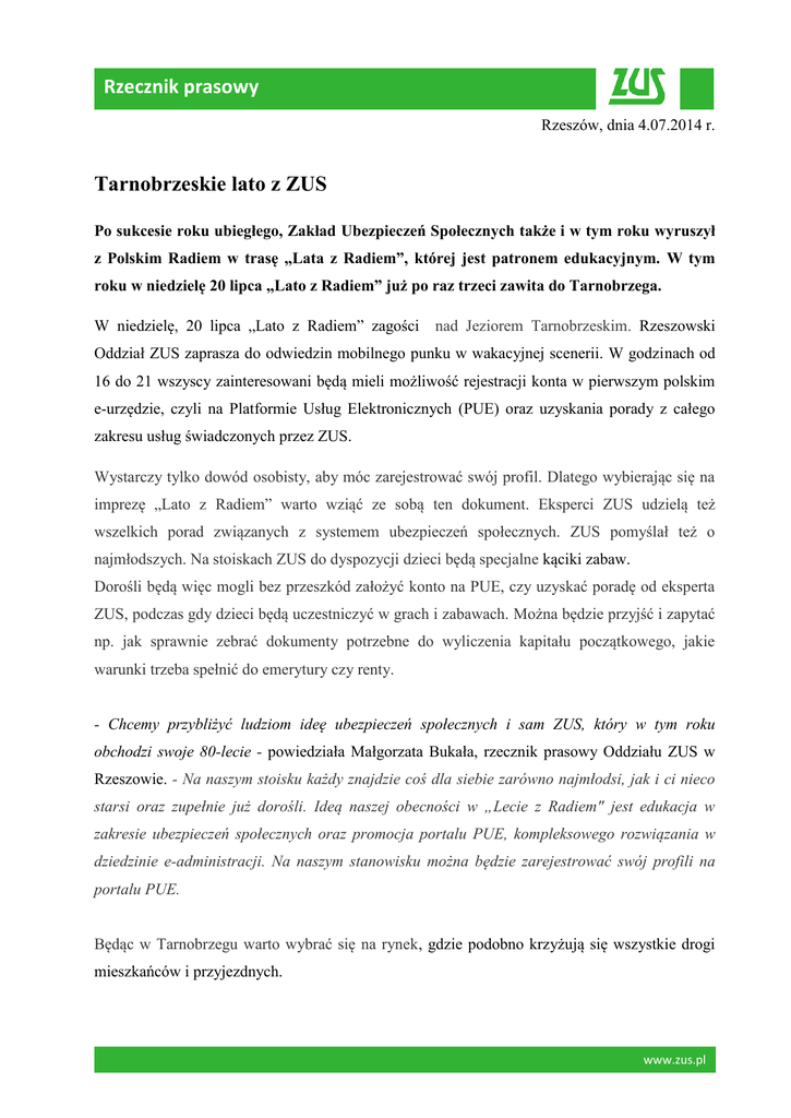 Rzecznik prasowy Tarnobrzeskie lato z ZUS