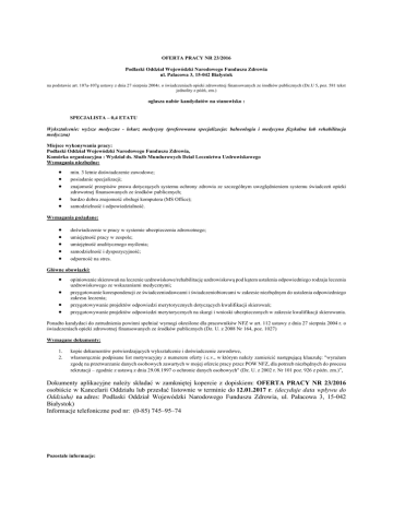 23/2016 - Podlaski Oddział Wojewódzki NFZ