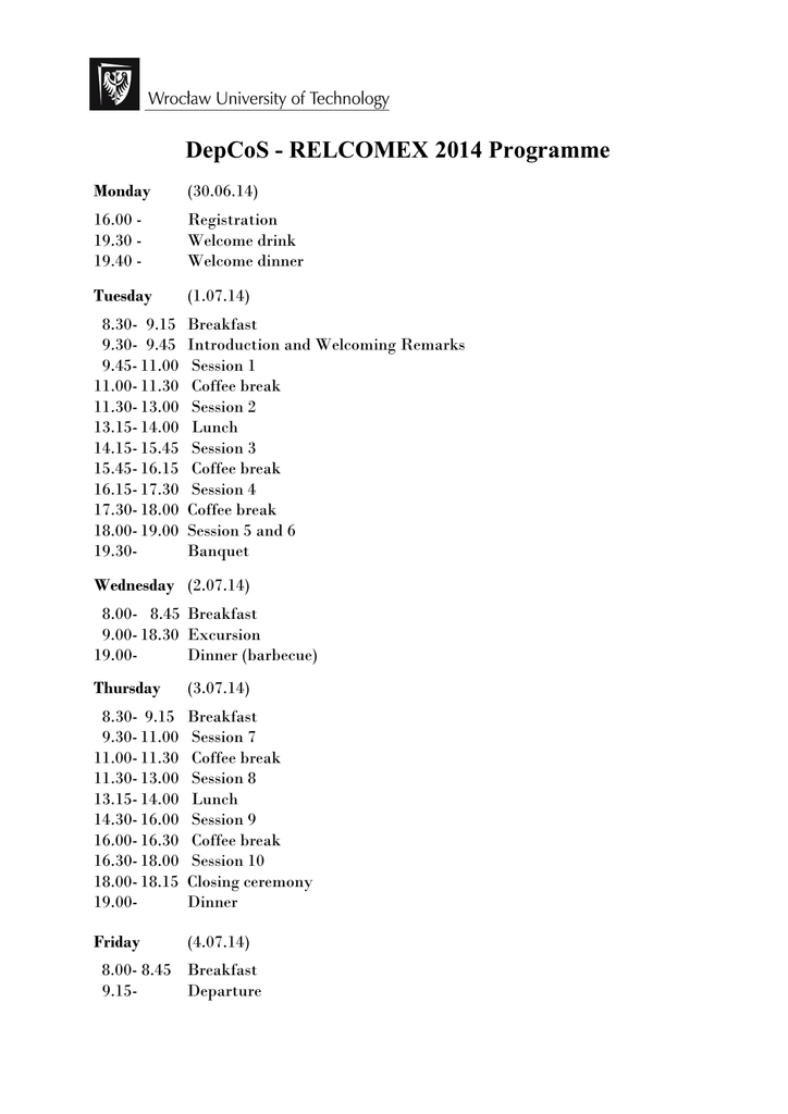 DepCoS - RELCOMEX 2014 Programme