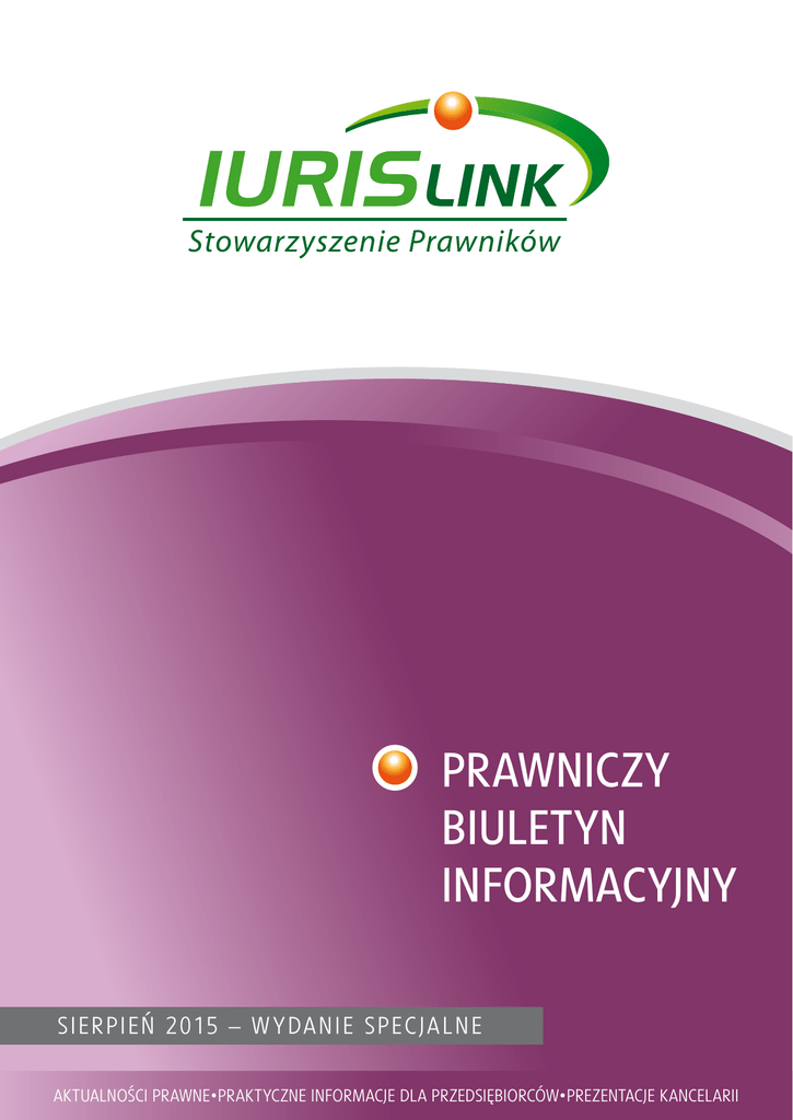 PRAWNICZY BIULETYN INFORMACYJNY SIERPIEŃ 2015 – W Y DANIE SPECJALNE AKTUALNOŚCI PRAWNE•PRAKTYCZNE INFORMACJE DLA PRZEDSIĘBIORCÓW•PREZENTACJE KANCELARII SPIS TREŚCI Wstęp str. 1 Mariola Więckowska Po co komu doradca prawny? str. 2 Anna Biel Czym jest siła wyższa str. 3 Leszek Paterek, Mateusz Słodczyk Korzystanie z cudzego znaku towarowego bez naruszania praw osoby uprawnionej str. 3 Aurelia Koksztys–Łuć Skarga pauliańska. Co to za instytucja i dlaczego należy ją znać? str. 5 Marcin Wika Arbitraż jako pozasądowy sposób rozwiązywania sporów gospodarczych str. 6 Monika Obtułowicz Abitraż czy spór przed sądem powszechnym? Charakter zapisu na sąd polubowny str. 7 Piotr Nachmann Niedokończona likwidacja spółki z o.o str. 9 Mariola Więckowska Spółki rodzinne str. 10 Anna Hoffman Odpowiedzialność członków zarządu spółek kapitałowych str. 12 Beata Małyszko Konstruowanie firmy spółki prawa handlowego str. 14 Prezentacja kancelarii str. 16 Stanisław Cabała Opracowania prawnicze Wydawca: Stowarzyszenie Prawników Iuris Link Ul. Zamenhofa 20/2, 90 – 510 Łódź, KRS 300424 Redaktor Naczelny: adw. Bartosz Łuć Funkcję Koordynatora Stowarzyszenia Prawników Iuris Link od trzech lat pełni Pani Paula Wiśniewska. Obecnie jest studentką II roku studiów magisterskich na kierunku europeistyka na Wydziale Nauk Społecznych Uniwersytetu Wrocławskiego. Bezpośredni kontakt z Koordynatorem pod nr tel 78 298 54 03 oraz za pośrednictwem poczty elektronicznej na adres: [email protected] Adres redakcji: ul Zamenhofa 20/2, 90–510Łódź [email protected], www.iurislink.pl Druk: Dynamo Druk Biuletyn zaewidencjonowany w rejestrze Dzienników i Czasopism Sądu Okręgowego w Łodzi pod nr RPR 1126 Nr 2/2012 7thidea.com Szanowni Państwo, Patrząc z perspektywy ostatnich dwudziestu lat na różne sfery naszego życia tj. zarówno sferę osobistą jak i związaną z zatrudnieniem czy działalnością gospodarczą, musimy stwierdzić, że stale przybywa ilość norm prawnych, wytyczających granice dopuszczalnego zachowania czy działania. Ta tendencja utrzyma się nadal. Proszę zwrócić uwagę na ilość i szczegółowość regulacji prawnych dotyczących Państwa, jako przedsiębiorców działających w branży „Przewozy drogowe”, istniejących obecnie i porównać z tymi, które obowiązywały 20 lat temu. Oddając Państwu ten numer Biuletynu Stowarzyszenia Iuris Link chcemy przedstawić założone w 2008 roku Stowarzyszenie Prawników Iris Link. Stowarzyszenie zrzesza prawników polskich i zagranicznych. Członkowie Stowarzyszenia, działający w kancelariach prowadzących sprawy o zróżnicowanym i szerokim zakresie tematycznym posiadają bogate doświadczenie zawodowe. Możliwość wzajemnego korzystania z tego doświadczenia oraz łatwość korzystania z pomocy zawodowej w różnych miejscach, dzięki rozlokowaniu kancelarii na terenie Polski, była jednym z celów naszego Stowarzyszenia. Został on zrealizowany. W Biuletynie zamieściliśmy artykuły dotyczące różnych zagadnień dotyczących, w tym wypadku, głównie sfery działalności gospodarczej, mogących zainteresować każdego przedsiębiorcę, jako że odnoszą się do spraw, z którymi każdy z przedsiębiorców może się spotkać w swojej działalności. Zachęcam do lektury tej publikacji, oraz, o ile uznacie ją Państwo za interesującą, do zapoznania się z naszą stroną internetową iurislink.pl, na której znajduje się wiele, być może przydatnych Państwu, informacji o obowiązującym prawie i jego stosowaniu. W pierwszym artykule zamieszczonym w tym Biuletynie autorka, Pani Mec. Mariola Więckowska, podając sytuacje z którymi większość ludzi spotyka się w swoim życiu, wskazuje, że warto każdy problem załatwić dobrze. Pozwala to oszczędzać czas i daje poczucie bezpieczeństwa. Zamieszczamy także prezentacje naszych kancelarii. Gdyby w jakiejś sytuacji uznali Państwo za przydatne skorzystanie z dorady lub pomocy prawnika, wszystkie potrzebne dane do kontaktu znajdziecie Państwo w tym numerze biuletynu. Stanisław Cabała adwokat Prezes Stowarzyszenia Prawników Iuris Link OPRACOWANIE PRAWNICZE Po co komu doradca prawny? Mariola Więckowska 2 Mało której grupie zawodowej poświęcono tyle kawałów, co prawnikom. Lekarzom wprawdzie też, ale to na zasadzie „przychodzi baba do lekarza”. Tymczasem wśród przedsiębiorców panuje wciąż powszechne przekonanie, żeby trzymać się od prawnika jak najdalej. Za chwilę ruszą kolejne środki unijne i to głównie dla małych i średnich przedsiębiorstw. Często żeby po nie sięgnąć przedsiębiorca dostrzega konieczność uporządkowania wielu zaległych spraw. Spraw, o których wie, że trzeba je poprawić, czy zmienić, tylko wciąż brakuje na to czasu. Z naszej praktyki wynika, iż umowy zawierane w związku z pozyskaniem dotacji, przewidują określone warunki korzystania z tego typu finansowania. Najczęściej są to ograniczenia wiążące się z koniecznością zapewnienia ciągłości własnościowej i zarządczej. Czy większość przedsiębiorców planujących rozwój strategiczny swoich firm, w tym pozyskanie w przyszłości finansowania działalności z innych źródeł niż dotacja, zwraca uwagę na te ograniczenia? Kiedy firma działa na określonym rynku, w określonej branży i przynosi dochody, właściciel jest przekonany, że nikt nie zna lepiej od niego, uwarunkowań decydujących o sukcesie, a sprawy do naprawienia, są do uporządkowania w każdej chwili, własnymi siłami i środkami. Małe i średnie przedsiębiorstwa prowadzone są często jako firmy rodzinne, działające na zasadzie wpisu do ewidencji działalności gospodarczej. Jednoosobowo firmę reprezentuje na zewnątrz senior rodu. To on buduje relacje z odbiorcami czy dostawcami, jest im osobiście znany, sam jest ojcem pomysłu na przedmiot działania firmy i strategię jej dalszego rozwoju. Firma ma siedzibę i je