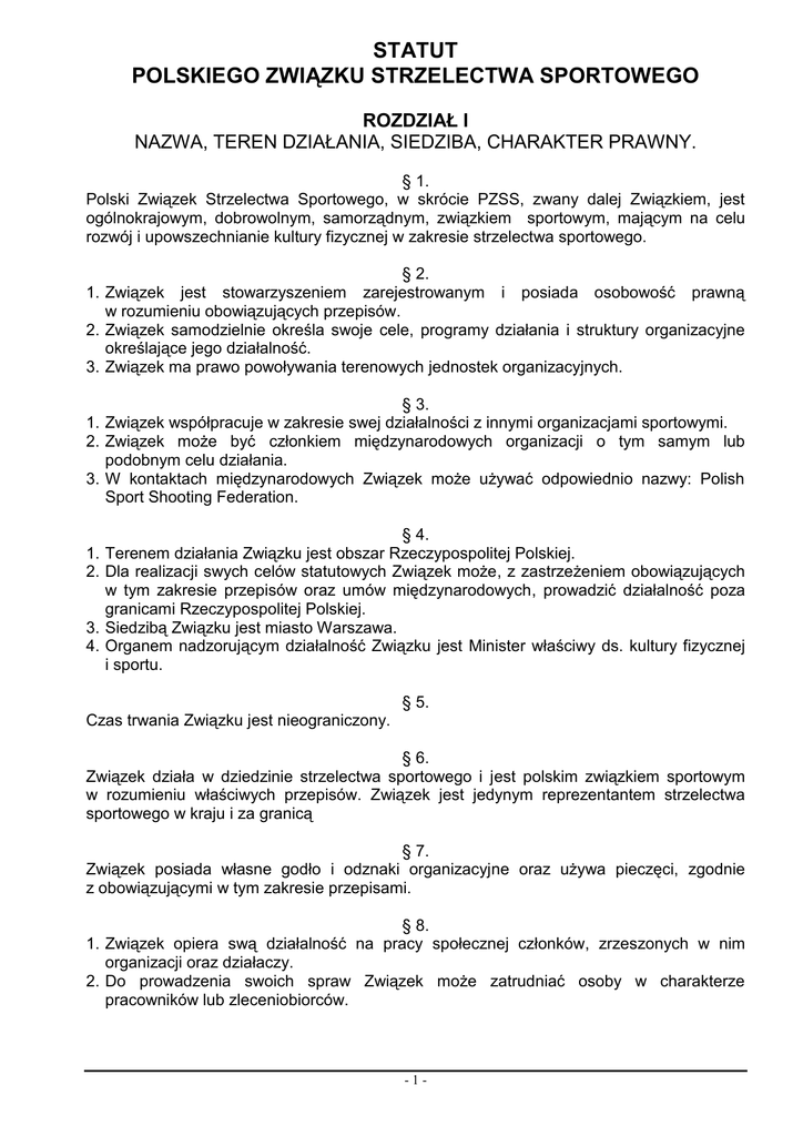 STATUT POLSKIEGO ZWIĄZKU STRZELECTWA SPORTOWEGO