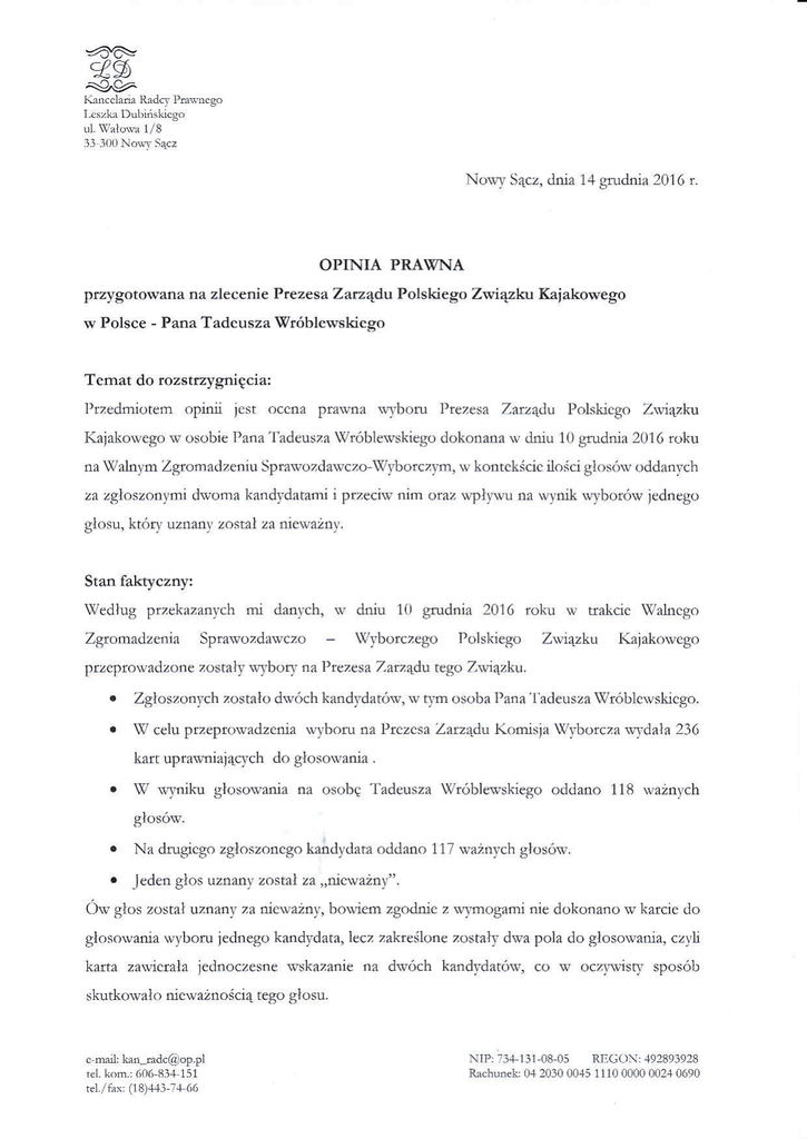 Kajakorłe5;o .ł- osobie Pana 'fadeusza Vróblewskiego dokonana rv dniu 10 $rrdflia 201ó ioku