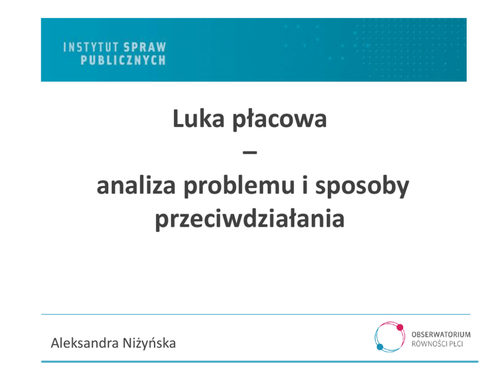 Luka płacowa – analiza problemu i sposoby przeciwdziałania Aleksandra Niżyńska Luka płacowa Dysproporcja w wynagrodzeniu kobiet i mężczyzn wyrażona jako różnica między średnim wynagrodzeniem brutto mężczyzn a średnim wynagrodzeniem brutto kobiet. Traktat rzymski Ramy prawne art. 119 Każde państwo członkowskie zapewni i utrzyma stosowanie zasady jednakowego wynagrodzenia mężczyzn i kobiet za jednakową pracę. Równość wynagrodzenia bez dyskryminacji ze względu na płeć oznacza, że wynagrodzenie: a) za tę samą pracę wykonywaną w systemie akordowym będzie ustalone w oparciu o tę samą jednostkę miary; b) obliczane na podstawie czasu pracy będzie jednakowe dla tego samego stanowiska pracy. Ramy prawne Traktat amsterdamski art. 141 Każde państwo członkowskie zapewni zastosowanie zasady równego wynagradzania pracowników kobiet i mężczyzn za pracę równą lub pracę równej wartości. Ramy prawne Konstytucja RP art. 33 § 2 Kobieta i mężczyzna mają w szczególności równe prawo do kształcenia, zatrudnienia i awansów, do jednakowego wynagradzania za pracę jednakowej wartości, do zabezpieczenia społecznego oraz do zajmowania stanowisk, pełnienia funkcji oraz uzyskiwania godności publicznych i odznaczeń. . Ramy prawne Kodeks pracy art. 112 Pracownicy mają równe prawa z tytułu jednakowego wypełniania takich samych obowiązków; dotyczy to w szczególności równego traktowania mężczyzn i kobiet w zatrudnieniu. Ramy prawne Kodeks pracy Art. 183a. § 1. Pracownicy powinni być równo traktowani w zakresie nawiązania i rozwiązania stosunku pracy, warunków zatrudnienia, awansowania oraz dostępu do szkolenia w celu podnoszenia kwalifikacji zawodowych, w szczególności bez względu na płeć (…) Ramy prawne Kodeks pracy Art. 183b. § 1. Za naruszenie zasady równego traktowania w zatrudnieniu (…) uważa się różnicowanie przez pracodawcę sytuacji pracownika z jednej lub kilku przyczyn określonych w art. 183a § 1, którego skutkiem jest w szczególności: (…) 2) niekorzystne ukształtowanie wynagrodzenia za pracę lub innych warunków zatrudnienia albo pominięcie przy awansowaniu lub przyznawaniu innych świadczeń związanych z pracą. Orzecznictwo Wyrok Sądu Najwyższego z dnia 10 września 1997 r. I PKN 246/97 „…jest naruszeniem zasady równego traktowania przyznanie ze względu między innymi na płeć lub wiek niektórym pracownikom mniejszych praw niż te, z których korzystają inni pracownicy, znajdujący się w tej samej sytuacji faktycznej i prawnej”. Orzecznictwo Wyrok Sądu Najwyższego z dnia 8 stycznia 2008 r. II PK 116/07 „Korzystanie z uprawnień przyznanych przepisami prawa w związku z urodzeniem i wychowaniem dziecka nie może być uznane za obiektywną przyczynę ustalenia niższego wynagrodzenia w porównaniu do innych pracowników” Orzecznictwo Wyrok Sądu Najwyższego z dnia 22 lutego 2007 r. I PK 242/06 „W razie zróżnicowania wynagrodzenia pracowników wykonujących jednakową pracę pracodawca powinien udowodnić, że kierował się obiektywnymi powodami. Przy powołaniu się pracodawcy na różne kwalifikacje zawodowe i staż pracy, oznacza to konieczność wykazania, że miały one znaczenie przy wykonywaniu zadań powierzonych pracownikom.” Luka płacowa w krajach UE w 2011 roku Switzerland Norway United Kingdom Sweden Finland Slovakia Slovenia Romania Portugal Poland Austria Netherlands Malta Hungary Luxembourg Lithuania Latvia Cyprus Italy Croatia France Spain Estonia Germany Denmark Czech Republic Bulgaria Belgium U (27 countries) 0,0% 17,9% 15,9% 20,1% 15,8% 18,2% 20,5% 2,3% 12,1% 12,5% 4,5% 23,7% 17,9% 6% 18% 8,7% 11,9% 13,6% 16,4% 5,8% 17,6% 14,8% 16,2% 27% 22% 16% 21% 13% 10,2% 16,2% 5,0% 10,0% 15,0% Źródło: Eurostat 2011 - unadjusted Gender Pay Gap, na podstawie Structure of Earnings Survey 20,0% 25,0% 30,0% Źródło: Główny Urząd Statystyczny, Struktura wynagrodzeń według zawodów w październiku 2010 r. Relacje przeciętnych wynagrodzeń kobiet w stosunku do wynagrodzeń mężczyzn w Polsce według wykształcenia w latach 2006, 2008 i 2010 (%) Źródło: Ewa Lisowska, Przemoc ekonomiczna wobec kobiet, ISP, 2013 Wybrane przyczyny luki płacowej • tradycyjne postrzeganie ról kobiet i mężczyzn w społeczeństwie • akceptowanie wynagrodzeń przez kobiety niższych stawek • postrzeganie kobiet jako mniej dyspozycyjnych w związku z posiadaniem dzieci lub możliwością zajścia w ciążę • przekonanie o tym, że głównym żywicielem rodziny jest mężczyzna Przyczyny luki płacowej – perspektywa makroekonomiczna • segregacja zawodowa • niski odsetek kobiet na stanowiskach kierowniczych • stereotypy dotyczące postrzegania i wartościowania kwalifikacji kobiet • brak mechanizmów niwelujących wpływ czynników kulturowych Za: Ewa Lisowska, Przemoc ekonomiczna wobec kobiet, ISP, 2013 Sposoby przeciwdziałania - prawo • zapis o równości wynagrodzeń w ustawie zasadniczej • zapis o równości wynagrodzeń w Kodeksie Pracy • zapis o równości wynagrodzeń w zbiorowych układach pracy • analiza działań partnerów społecznych w zakresie równości wynagrodzeń Génisson (2001): nakłada na partnerów społecznych obowiązek negocjowania na rzecz równości płci w zatrudnieniu, w tym równości wynagrodzeń Sposoby przeciwdziałania • obowiązek prowadzenia przez pracodawców statystyk dotyczących wynagrodzeń z podziałem na płeć Dania: przygotowanie statystyk bezpłatnie oferuje Narodowe Biuro Statystyczne. Austria: pracodawcy nie przekazujący statystyk są wymieniani na stronie www Ministerstwa ds. Kobiet. Sposoby przeciwdziałania – prawo i praktyki wewnątrz firm • jawność wynagrodzeń częściej w sektorze publicznym niż prywatnym Austria, Finlandia, Francja, Włochy, Norwegia, Szwecja i Belgia: system jawności struktury wynagrodzeń możliwy do wglądu również przez reprezentantów pracowników. Holandia: w sytuacji 