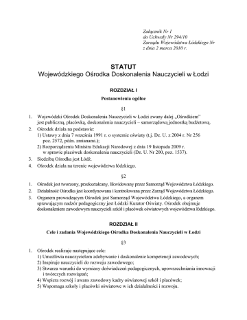 STATUT Wojewódzkiego Ośrodka Doskonalenia Nauczycieli w Łodzi