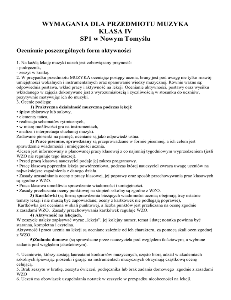 WYMAGANIA DLA PRZEDMIOTU MUZYKA KLASA IV - sp1