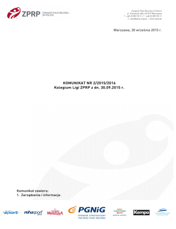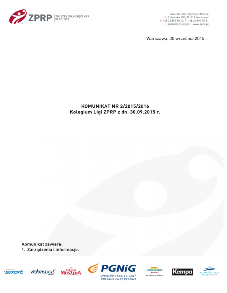 KOMUNIKAT NR 2 - Związek Piłki Ręcznej w Polsce