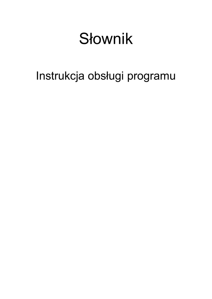 Słownik Instrukcja obsługi programu Instalacja i pierwsze uruchomienie Przed użyciem programu wymagana jest instalacja pakietu redistributable .NET 4.0. Sam program nie wymaga instalacji. Program dostępny jest w wersji polskiej i angielskiej. Wybór lokalizacji determinowany jest przez język systemu. Instalacja pakietu .NET4 Uruchomienie dołączonego pliku dotNetFx40_Full_x86_x64.exe Zaakceptowanie licencji i kontynuacja instalacji. Czas trwania nawet do 5 minut. Rys 1. Okno instalatora .NET Framework Pomyślne zakończenie instalacji i wyjście z instalatora. Rys 2. Okno zakończenia instalacji .NET Framework 4 Uruchomienie programu Katalog z programem należy przekopiować na dysk twardy. Zawiera on następujące pliki: slownik.txt - zawiera bazę użytych podczas działania programu słów Slownik.exe - aplikacja config.txt - plik z ustawieniami konfiguracyjnymi czasów: wyboru i martwego. Program uruchamia się klikając dwa razy ikonę Slownik.exe. Rys 3. Zawartość folderu z aplikacją Główne okno aplikacji powinno pojawić sie krótko po kliknięciu. Rys 4. Główne okno aplikacji Podstawowa obsługa Program Słownik używany jest zawsze z innymi programami, do których wprowadzamy tekst (np. edytory tekstu, przeglądarki internetowe, komunikatory). Główne okno programu składa się z listy dostępnych słów oraz pola z wprowadzonymi wyrazami (maksymalnie dwoma). Użytkownik wprowadza w innej aplikacji tekst tak jak zawsze (przy pomocy klawiatury fizycznej, lub wirtualnej). Program Słownik reaguje na wprowadzone znaki i w oparciu o nie zmniejsza listę podpowiadanych słów. Jeżeli na liście znajduje się interesujące nas słowo, to po kliknięciu w nie lub najechaniu na nie kursorem zostanie ono wprowadzone do programu, w którym pracujemy. Istnieje możliwość modyfikacji wprowadzonego słowa poprzez naciśnięcie klawisza Backspace (w celu usunięcia ostatniego znaku) lub przemieszczaniu kursora na odpowiednie miejsce w wyrazie za pomocą strzałek (prawo, lewo). Po naciśnięciu Spacji możemy dopisać kolejny wyraz, który zostanie skojarzony z aktualnym po naciśnięciu Spacji po raz drugi. W momencie kiedy program wykryje Spację naciśniętą po drugim słowie w oknie słownika pozostanie jedynie ostatni wpisany wyraz. Stwarza do możliwość dopisywania zlepków do każdego wpisanego wyrazu. Kasowanie okna edycji Słownika następuje po naciśnięciu klawisza Enter. Klawisze specjalne: Enter - zapisuje aktualnie wpisane słowo/słowa do słownika oraz czyści okno edycji. Spacja - Jeżeli po wpisanym wyrazie naciśniemy spację mamy możliwość dopisania drugiego wyrazu, ponowne naciśnięcie spacji (po drugim wyrazie) skutkuje zapisaniem wyrazu bazowego wraz ze zlepkiem do słownika oraz pojawieniu się w oknie edycji słownika ostatniego wpisanego wyrazu. W przypadku gdy bazowy wyraz istnieje w słowniku naciśnięcie spacji spowoduje wyświetlenie wyrazów (tzw. zlepków) skojarzonych z danym wyrazem (istnieje możliwość że nie pojawią się żadne podpowiedzi. Oznacza to, że z danym wyrazem nie są skojarzone żadne zlepki. Naciśnięcie dowolnej litery spowoduje wyświetlenie listy podpowiedzi wszystkich wyrazów, które zaczynających się od wpisanej litery a później ciągu znaków) Tab - wybranie pierwszego wyrazu na liście podpowiedzi. Jest on konfigurowalny w opcjach. Strzałki - zmiana pozycji kursora, dająca możliwość dopisania liter w dowolnym miejscu wyrazu Przykład: Do programu Notatnik został wprowadzony ciąg: „ko”. Po kliknięciu/najechaniu na słowo „koleżanki” ciąg „leżanki” zostanie dopisany w programie notatnik – zostanie utworzone słowo "koleżanki" (por. rys 5). Rys 5. Przykład działania aplikacji z edytorem tekstowym Notatnik Do programu Notatnik został wprowadzony ciąg: „Witam”. Po wciśnięciu spacji, program wykrył że dla tego słowa istnieją zlepki i została wyświetlona ich lista Rys 6. Ukazanie działania podpowiadania zlepków Przykład video: Działanie programu pokazuje załączony na nośniku plik video w słownik.avi Opis filmu słownik.avi: 1.Wpisanie za pomocą zwykłej klawiatury słowa "Dzisiaj" 2.Naciśnięcie spacji na klawiaturze ekranowej. 3.Pojawienie się skojarzonych wyrazów. 4.Wybranie danego wyrazu poprzez najechanie myszą i odczekanie zadanego w ustawieniach czasu. 5. Ponowne naciśnięcie spacji w celu zaktualizowania użycia wyrazów istniejących w słowniku. Pojawienie się ostatniego wpisanego wyrazu w oknie edycji słownika. Uwaga: Każda z czynności polegających na wprowadzeniu wyrazu może zostać wykonana zarówno na klawiaturze ekranowej jak i zwykłej. Instrukcja użytkowania krok po kroku 1. Skopiować katalog z aplikacją na dowolne miejsce na dysku. 2. Otworzyć skopiowany katalog. 3. Dwukrotnie kliknąć na plik Slownik.exe. UWAGA!!! Jeżeli będzie używana klawiatura ekranowa należy ją najpierw uruchomić a następnie program. Pojawi się główne okno programu. Widoczne będą 2 pola(górne-mniejsze, dolnewiększe) oraz 3 przyciski (O programie, Ustawienia, Wyjdź). Jeżeli jest to pierwsze uruchomienie programu to dolne pole będzie puste. 4. Uruchomić dowolny program w środowisku Windows, w którym chcemy wprowadzić tekst. 5. Wpisanie ciągu znaków w dowolnym programie poskutkuje wpisaniem tego samego ciągu do górnego pola słownika. 6. Wpisywany wyraz można dowolnie modyfikować do momentu naciśnięcia spacji lub enter a) naciśnięcie spacji spowoduje: -możliwość dopisania w górnym polu drugiego wyrazu, który będzie zapisany jako zlepek do pierwszego. - wyświetlenie w dolnym oknie listy wyrazów skojarzonych (zlepków) z widocznym w oknie górnym. - jeżeli wpisany wyraz nie występuje w słowniku a co za tym idzie, nie posiada zlepków to listą podpowiedzi będą bazowe wyrazy występujące w słowniku. b) naciśnięcie enter spowoduje zapisanie aktualnego ciągu znaków jako pojedyncze słowo i wyczyszczenie górnego 